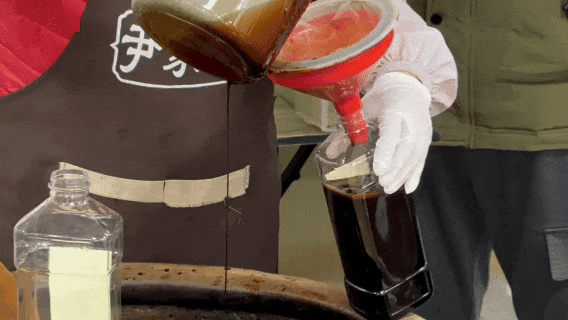 他还积极开拓线上销售渠道,2020年起尝试联系网络达人带货,忙活一年却收效甚微。“别人带货不行,我就想自己来讲老酱油的故事。”王宗瀚说。他从零开始学拍摄、剪辑,在抖音、小红书等平台推送古法酿造日常。2023年4月30日,一条展示古法酿酱的视频突然爆火,他临时在晒场架起手机直播,连播6小时,嗓子哑了也舍不得停。“当时直播间涌进上万人,都问在哪儿买、能不能来打酱油。”王宗瀚说,那是他最激动的一天。