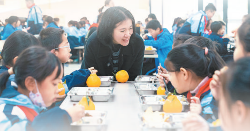 “此前督查发现,缙云县部分中小学食堂存在后厨建设不达标、师生未能同餐等问题。‘师生同菜同质同价’是整改方向之一。”程淑霞一边解释,一边掏出手机扫码,要了一份校园餐。随后找张餐桌坐下,和学生们聊了起来。