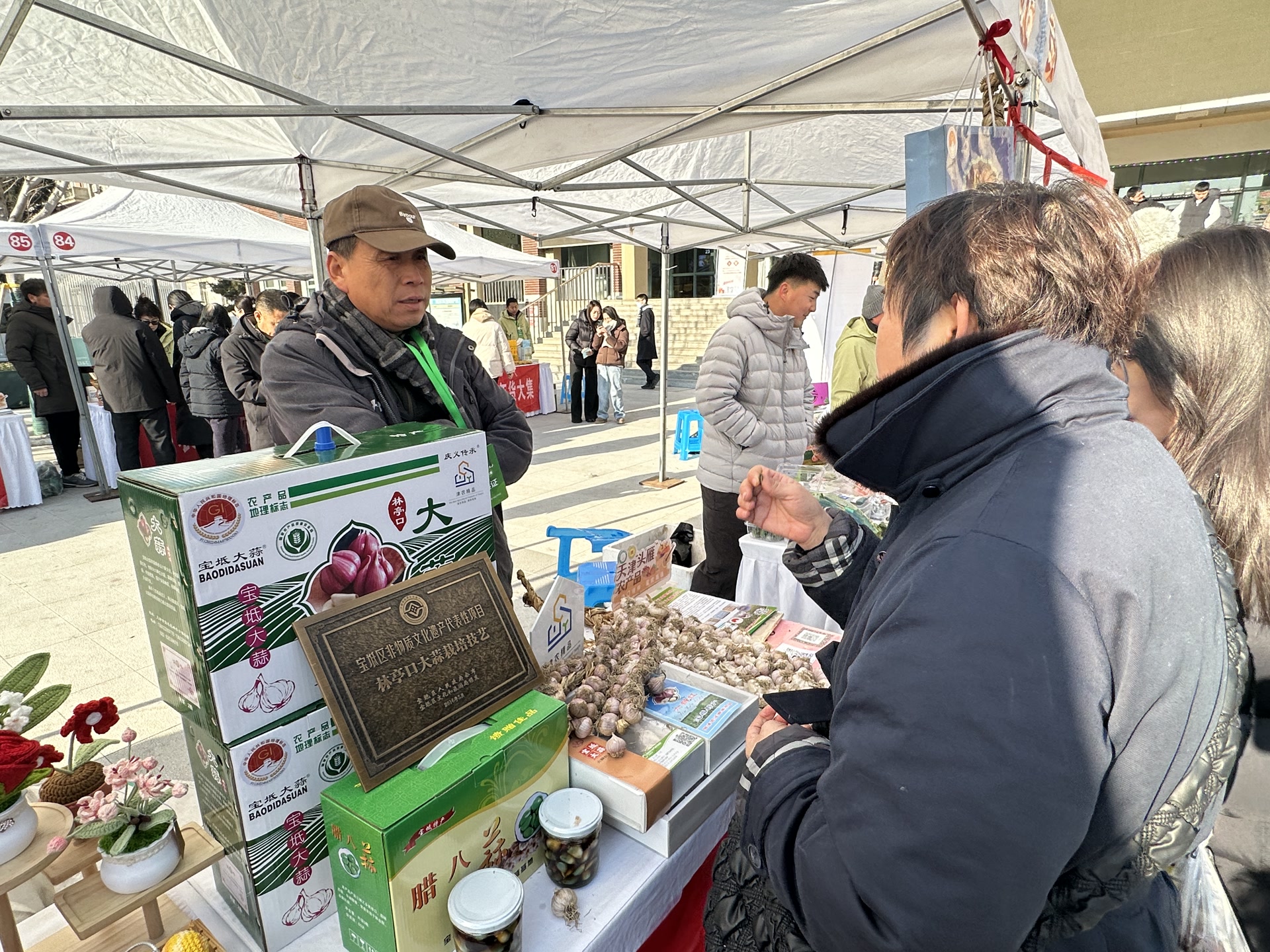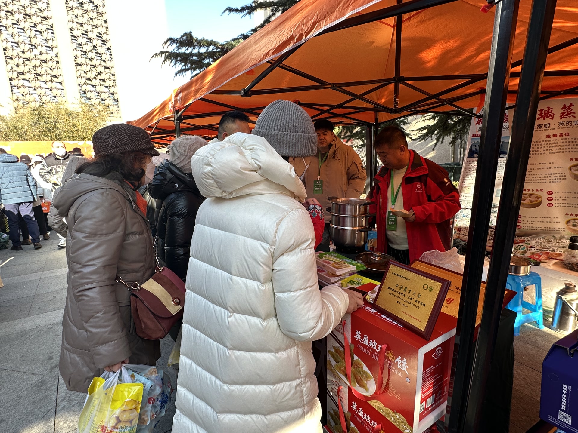 “嗯,好吃!有小时候地瓜的味道,这多少钱一斤?”拖着小车的付大妈,在红薯摊位前停下了脚步。试吃一口新品种“玛莎莉”后,她眼前一亮。“这种大集真挺好,东西来自天南海北,都能先尝后买。关键是农业大学办的活动,品质肯定错不了!正好提前来备点年货。”付大妈的小车已经装得满满当当,河北安国的山药、天津沙窝的萝卜、江西赣南的脐橙……她还惦记着,待会儿要去买上几斤现割的黑山羊肉。