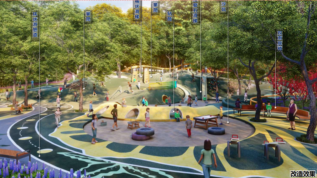 其中,位于羊坊店街道的会城门公园将优化空间布局,建设环形路网实现慢跑与慢行分离。儿童活动区将新增双层游乐设施,上层设置秋千、滑梯,下层为家长提供休憩与文化展示空间。公园还将增设室外乒乓球场、林下康养步道、戏曲歌唱平台及青少年健身区。