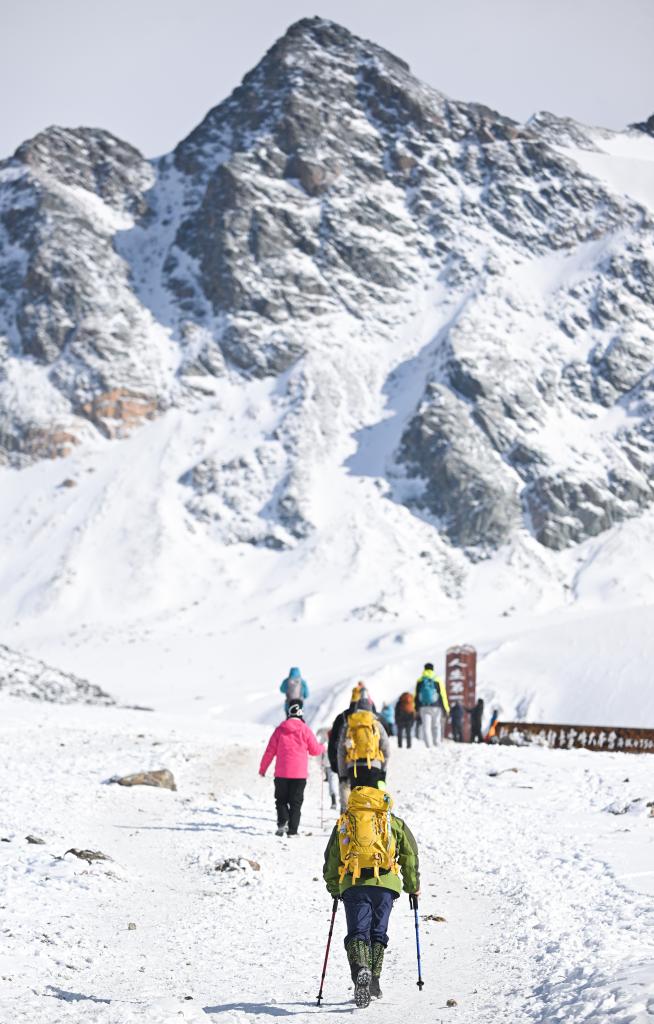 新华社西宁1月8日电 小寒节气,天寒地冻。湛蓝天空下,岗什卡雪山巍然耸立。山谷气温已降到零下20摄氏度。然而,在岗什卡雪山游客服务中心,却是人潮涌动,呈现出热“雪”沸腾的景象。全国各地慕名而来的冰雪运动爱好者背着各种登山装备,正整装待发,准备打卡“人生第一座雪山”。