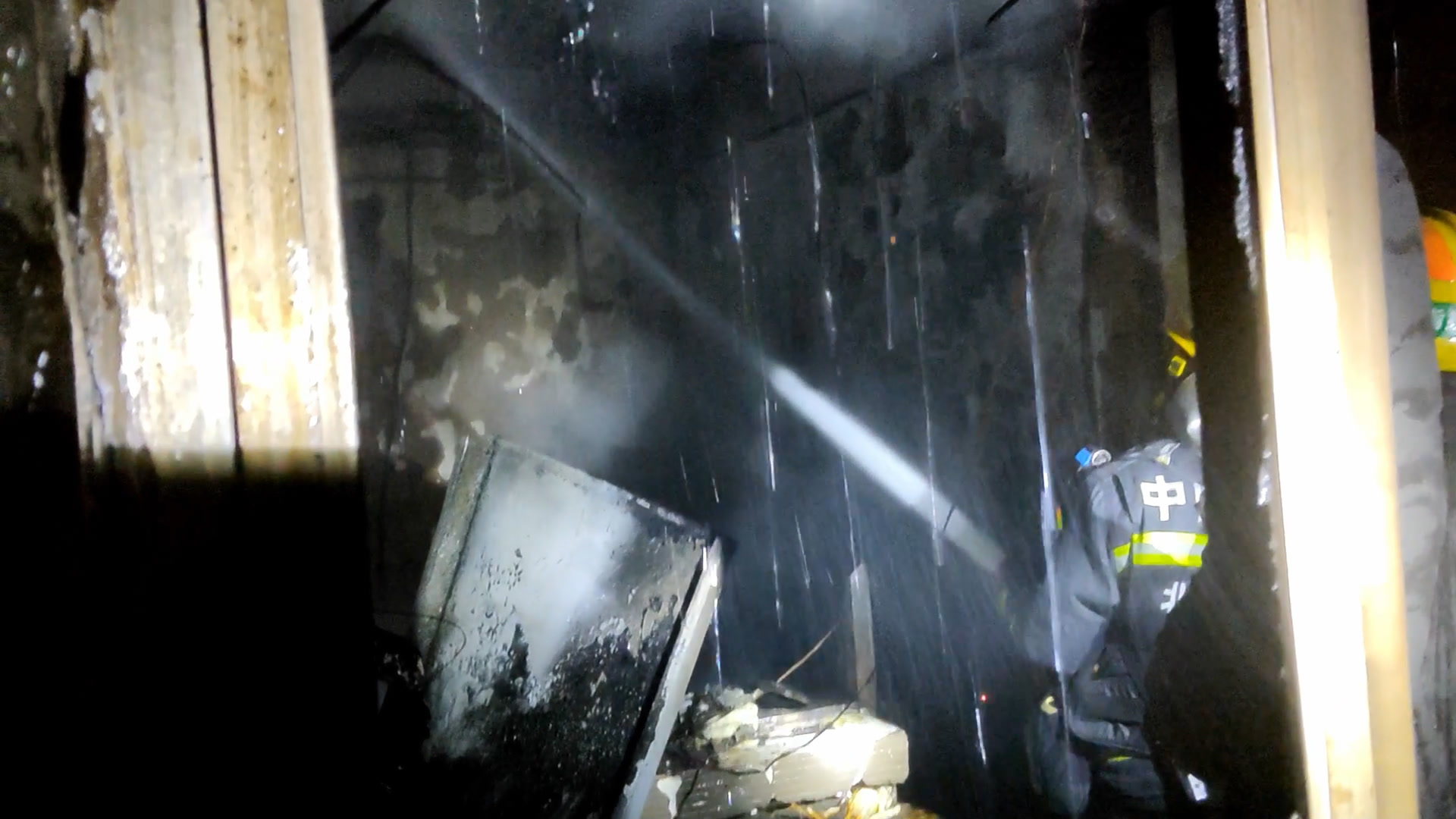 消防队员贯彻“救人第一、科学施救”的行动原则,迅速分工:一组人员出水枪压制火势,防止蔓延;另一组在水枪掩护下,顶着浓烟直扑卧室方向,搜救被困人员。