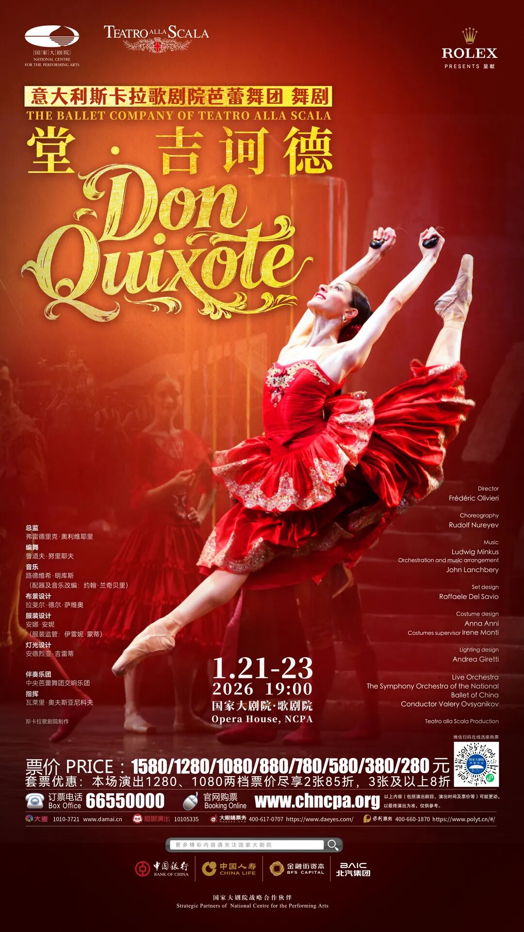 作为世界顶级芭蕾艺术殿堂之一,斯卡拉歌剧院芭蕾舞团以其深厚的古典传统与精致严谨的舞台风格闻名于世,舞团在努里耶夫作品的演绎上,始终保持高度的艺术纯度与风格自觉。此次演出将由舞团顶级阵容登台,为观众献上一次兼具权威诠释与舞台生命力的《堂·吉诃德》。