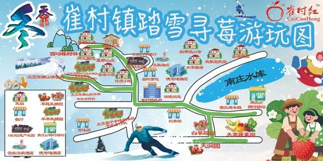当燕山余脉的风裹着冬意吹到崔村,这里的暖冬惊喜早已藏好,这里有雪道上的飞驰快感,有温室里的鲜甜草莓,有文创园的慢时光,还有山径间的静谧悠然,无论是单日短途游还是周末深度游,都能让您在崔村的冬日里,收获满满幸福感~