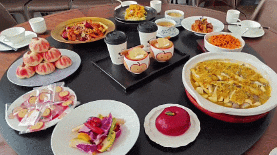 中午:就在1983创意产业园里吃苹果宴,别具一番风味。