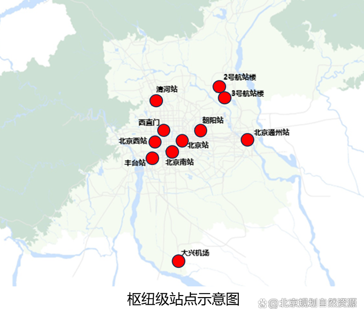 枢纽级站点是面向城市群,主要服务国际交往、城市对外联系的大型交通枢纽节点,包括两大航空枢纽和八大铁路枢纽。枢纽级站点是城市外部出行和内部出行转换的关键节点,应构建以轨道为主体的公共交通集散体系,实现城市内外交通高效转换。