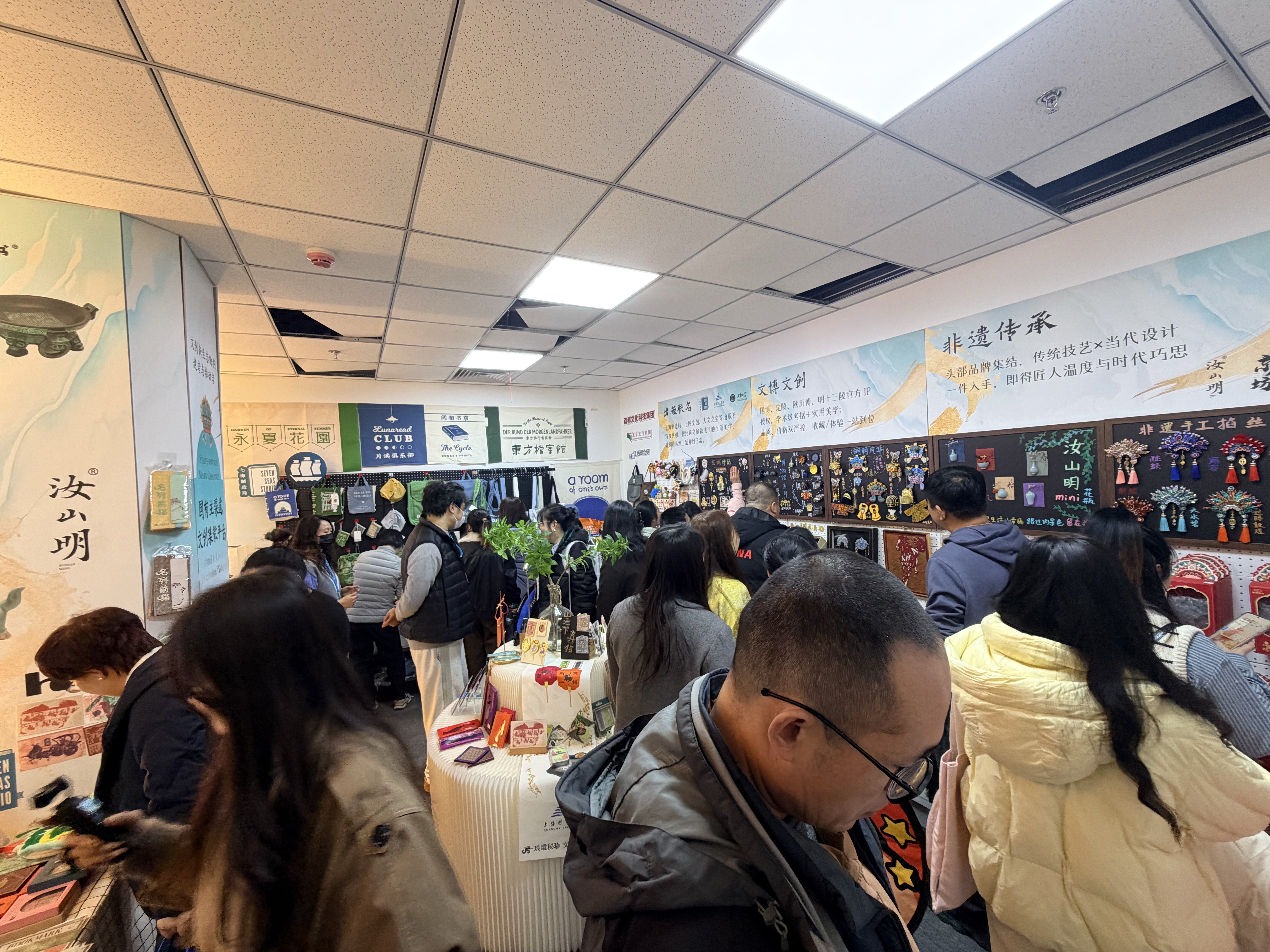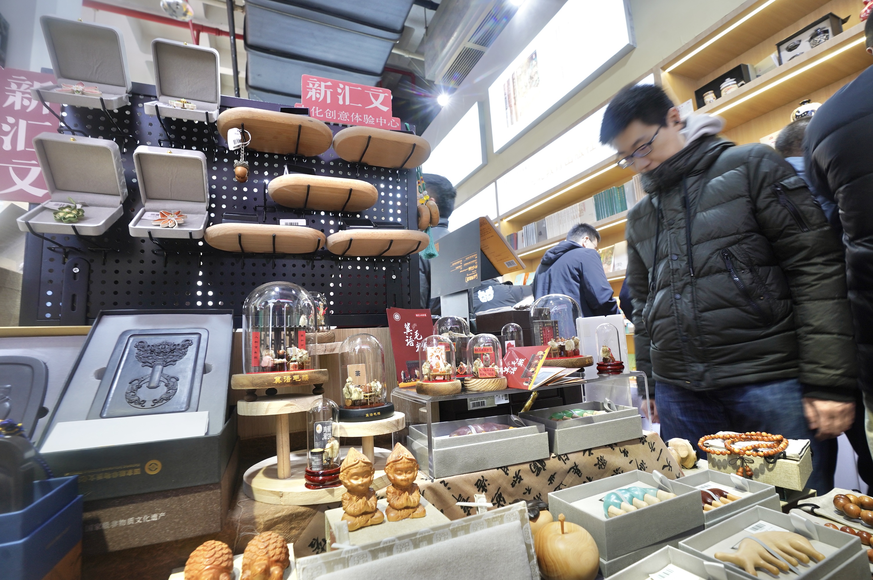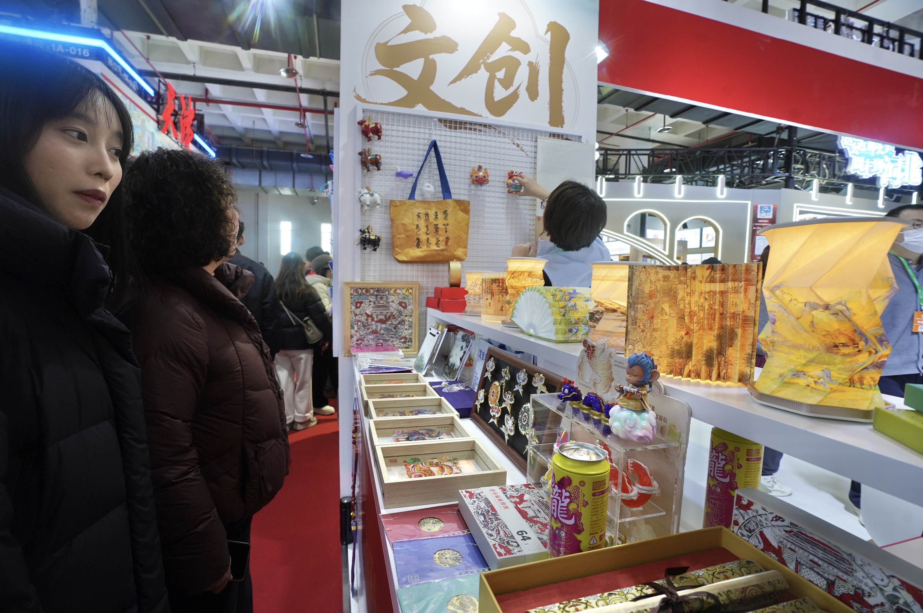 现场,“非遗传承”“文博文创”“出版联名”三大系列产品体系化陈列,生动诠释了“出版+文创”的深度融合。相关负责人告诉记者,汝山明、京合坊等品牌领衔的非遗系列,让传统工艺无缝融入现代生活;与国博、定陵、陕历博等官方IP合作的文博系列,兼具文化厚度与趣味体验;联合上海译文出版社、上海图书馆打造的出版联名系列,则将经典阅读转化为触手可及的生活美学。