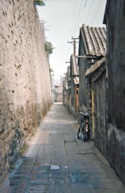 故宫东门外排房外景,左边即为故宫外墙。