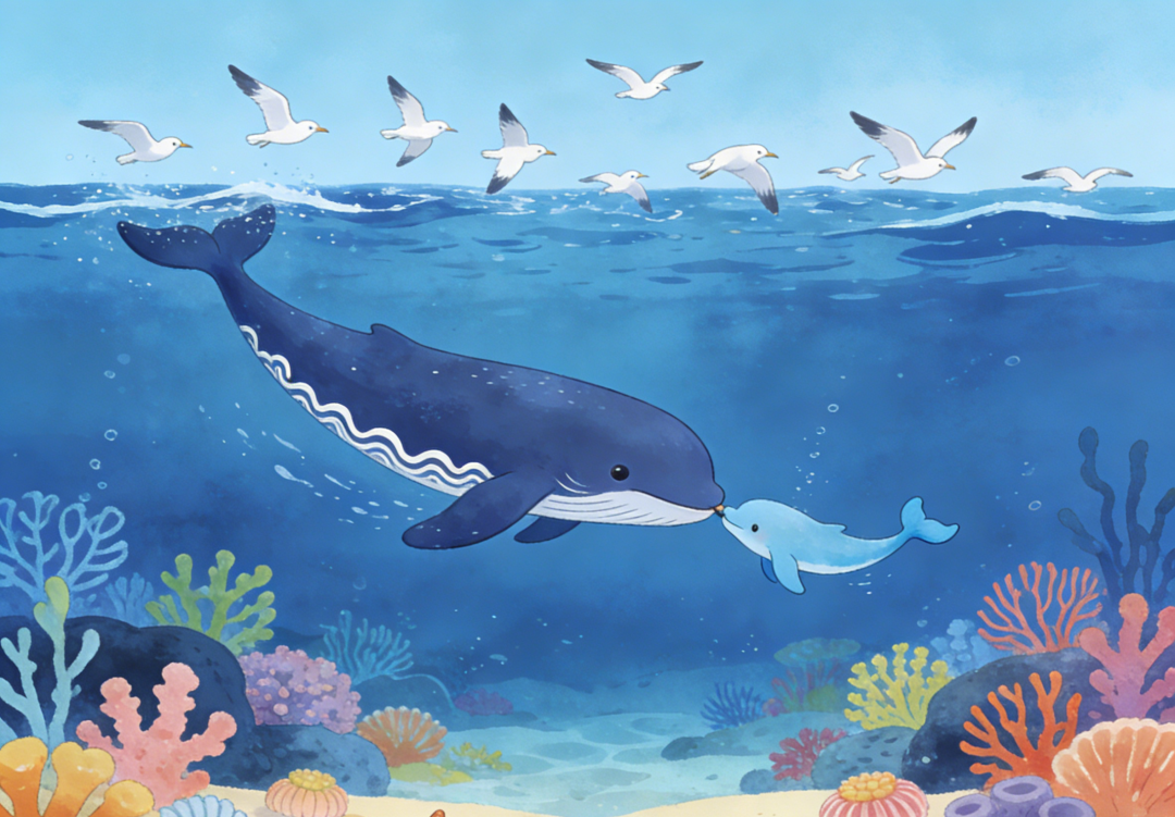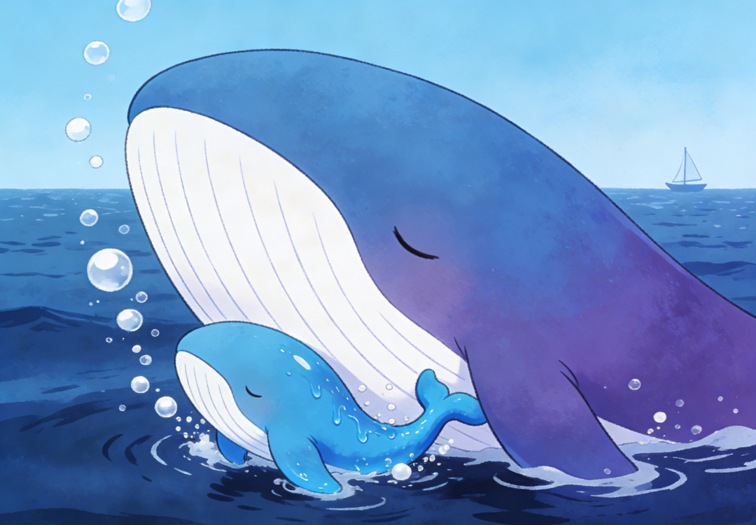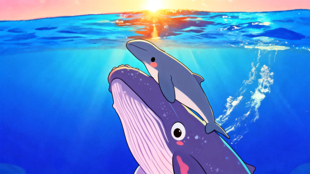 错!那是“生存必修课”现场!托举不仅是省力,更是课堂!在漫长的依附期,母鲸通过独特鲸歌、身体触碰、行为示范,进行全方位生存教学——从认路、聊天到抓鱼、躲敌…所有保命技能,都在妈妈背上开小灶!