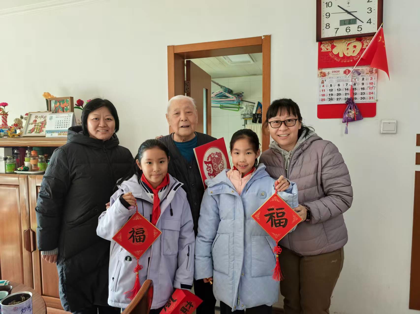 新春民俗艺术展中,百余幅由师生精心创作的春联、福字与窗花整齐陈列,吸引社区居民细细端详。“看着就有年味儿!”不少人拿出手机拍下自己喜爱的作品。现场,“小小书法家”挥毫泼墨,一副副饱含祝福的春联跃然纸上;还有的学生埋头剪裁,吉祥花鸟、如意纹样等精美窗花让人赞叹。孩子们的现场创作还吸引社区居民共同加入。“能和小朋友一起写春联,既热闹又有意义!”一位居民说。随后,孩子们还带着亲手创作的春联、福字与窗花,走进社区独居老人等特殊群体家庭,送上温暖。