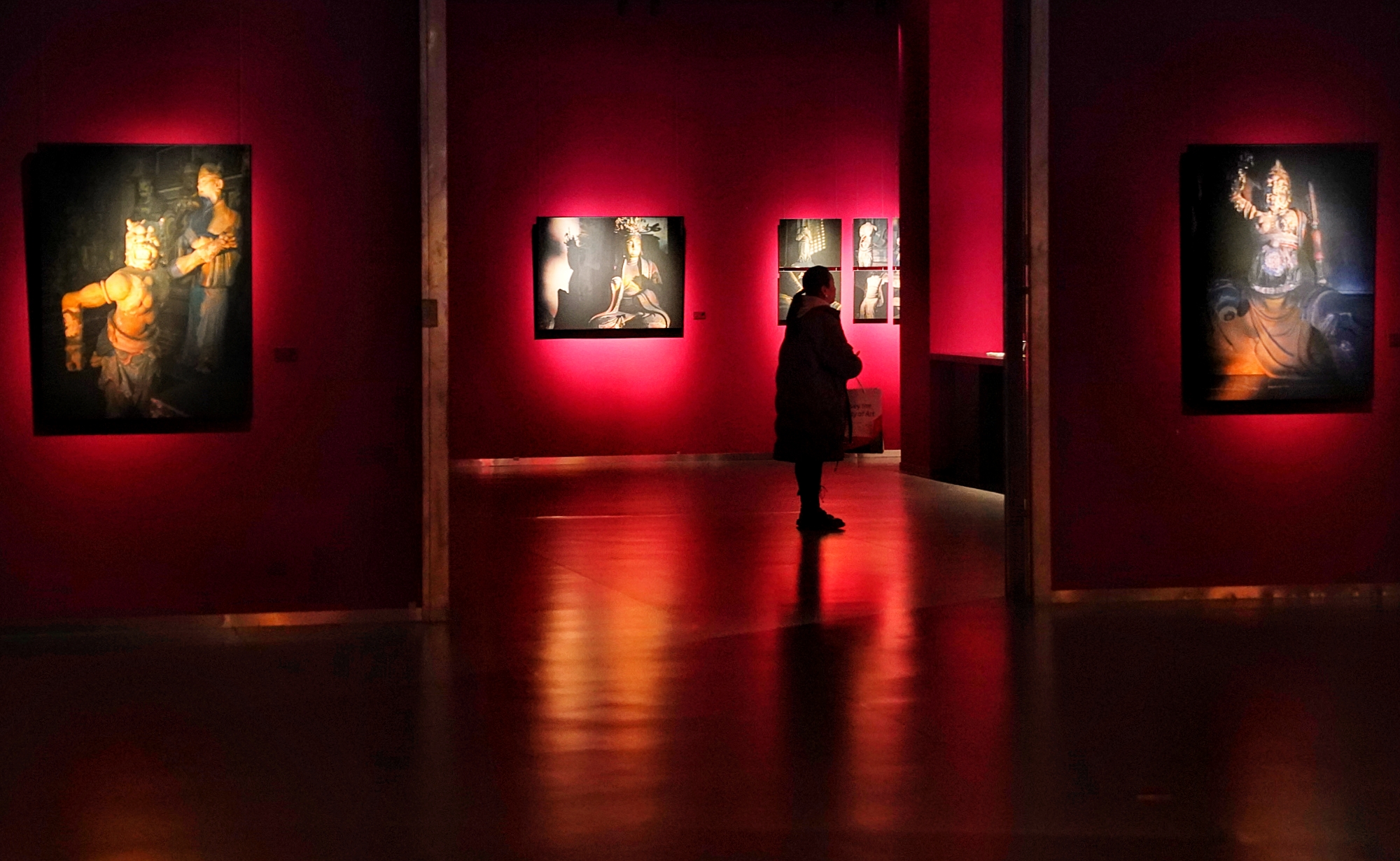 本次展览以“启蒙与及物”为核心主题,集结胡武功、潘科、时新德三位摄影名家的精品力作,通过两大核心单元展开叙事。其中,《四目重瞳》单元收录胡武功、潘科两位摄影艺术家近半个世纪的纪实作品,聚焦改革开放时期的百姓日常,用镜头留存时代质朴印记;《净信·自性》单元则以文物塑像为拍摄对象,在光影流转中诠释东方美学,巨幅壁画类作品更引发观众对历史与人性的深度思考。