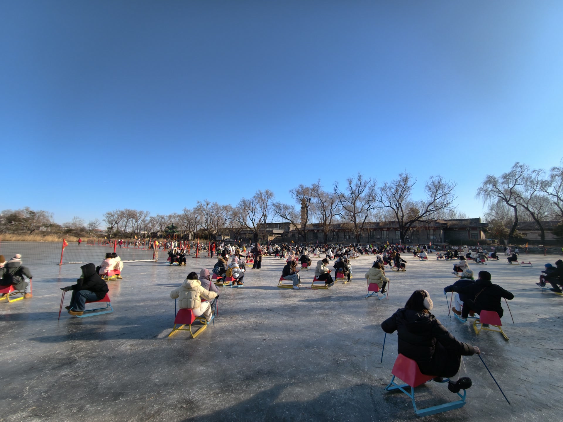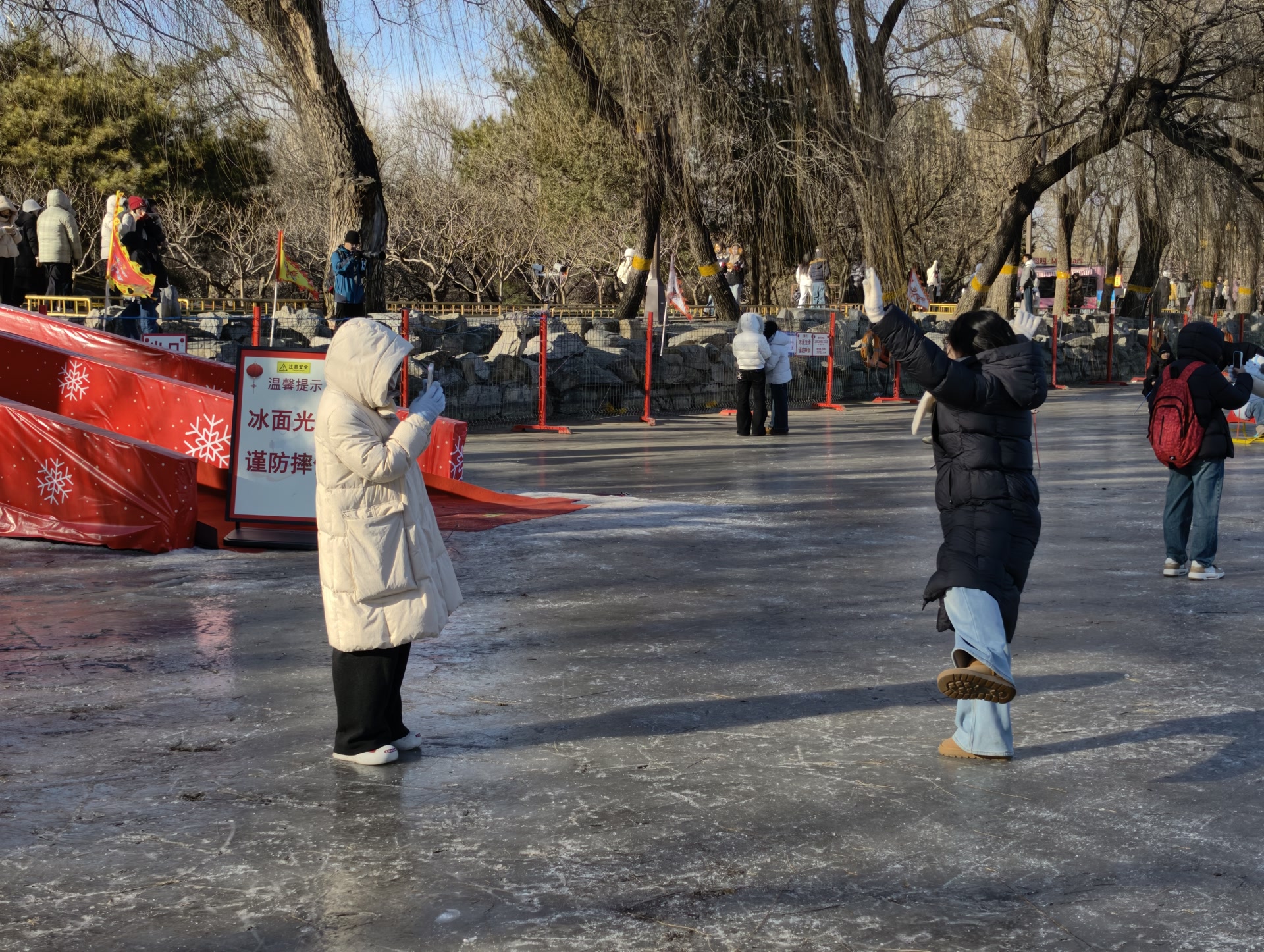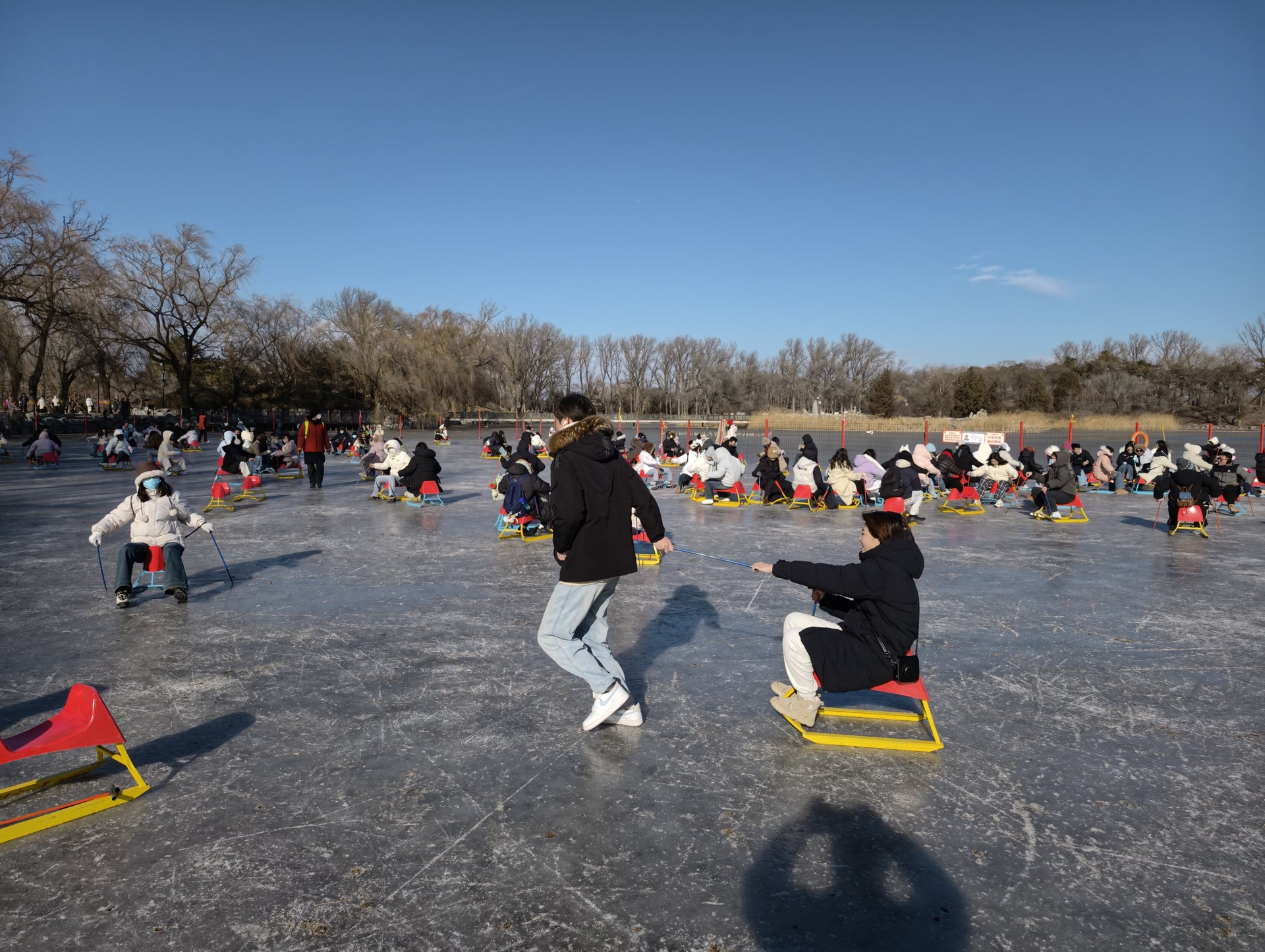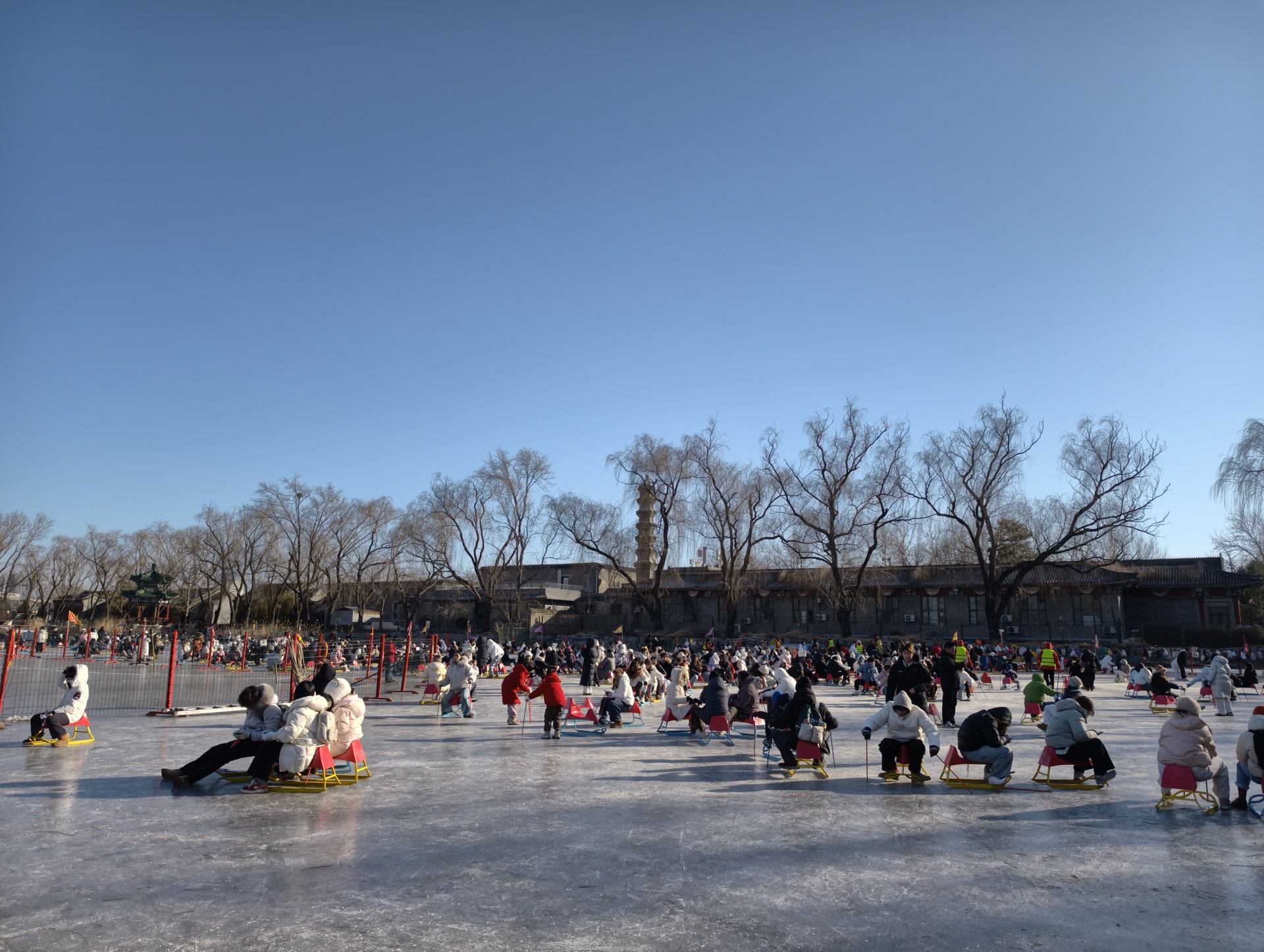 北风把枯柳磨成冰刀,在镜面划开冬天的美丽。圆明园的冰面上,孩子们的笑声撞碎在围栏上,溅起满场玲珑的春讯。远处,石塔正把浮云捏成新的柳絮,等一场东风来认领。