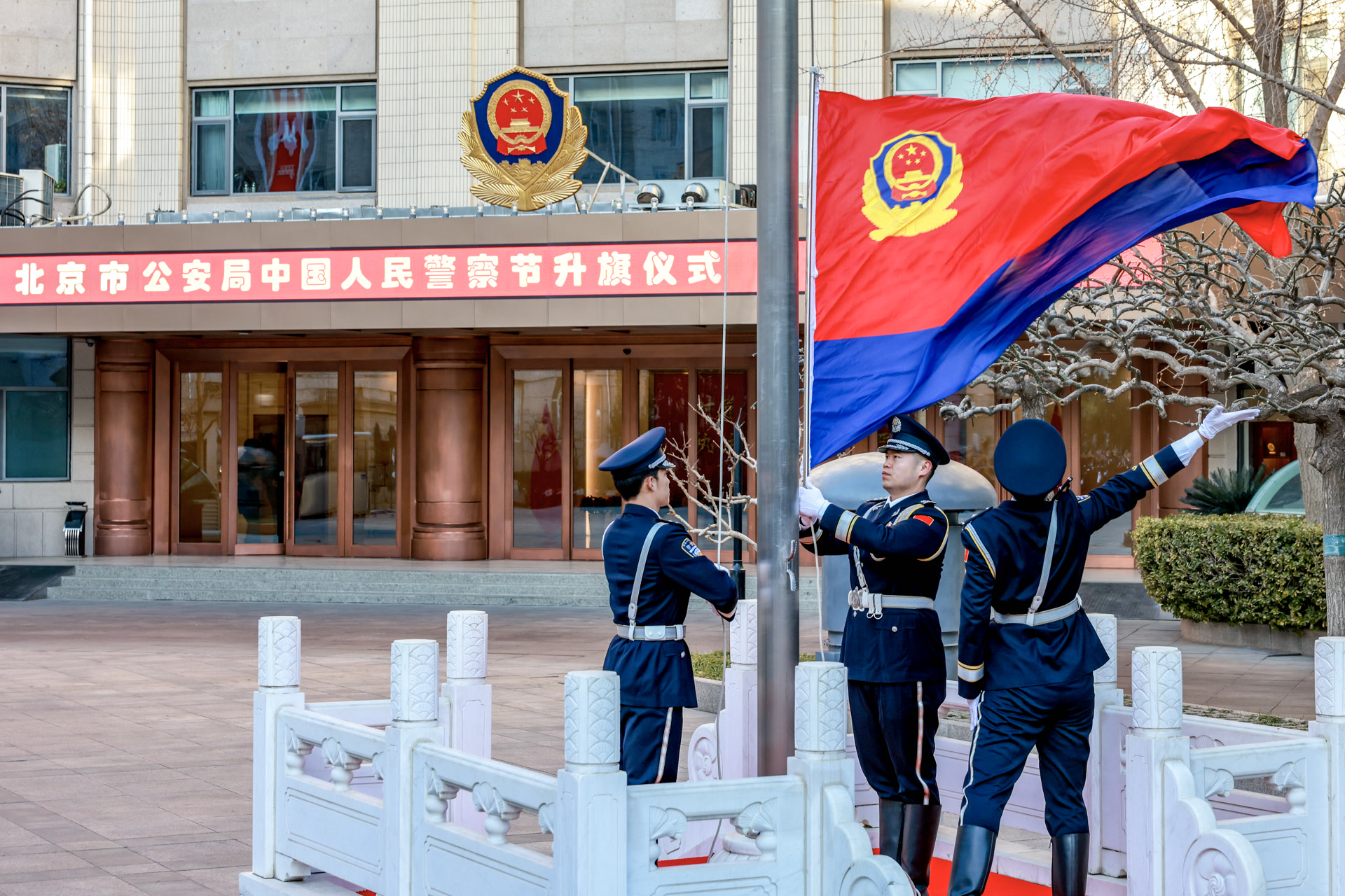 为庆祝第六个中国人民警察节,1月10日上午,北京市公安局举行中国人民警察节升旗仪式。