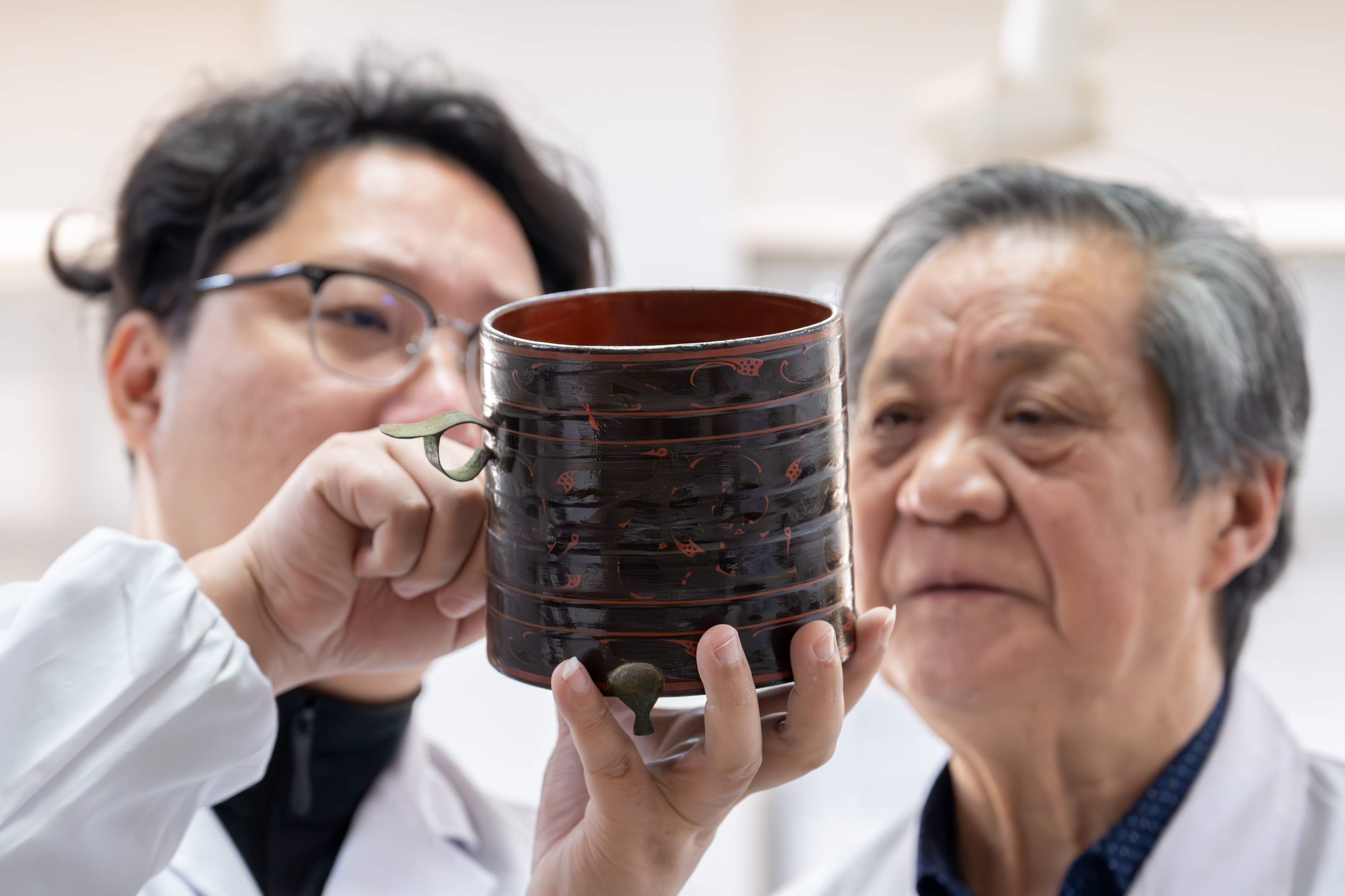 一件件漆器,形态各异,通过药水渗透,置换出“体内”水分,加固焕新。