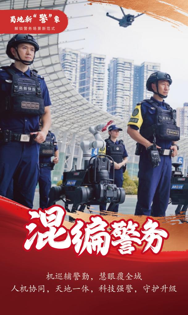 成都高新公安携人工智能警用设备在世运村开展工作。