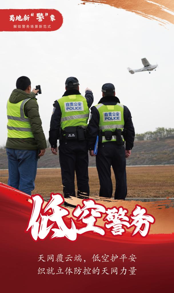 四川自贡公安在机场分局辖区内观摩小型飞机起飞。