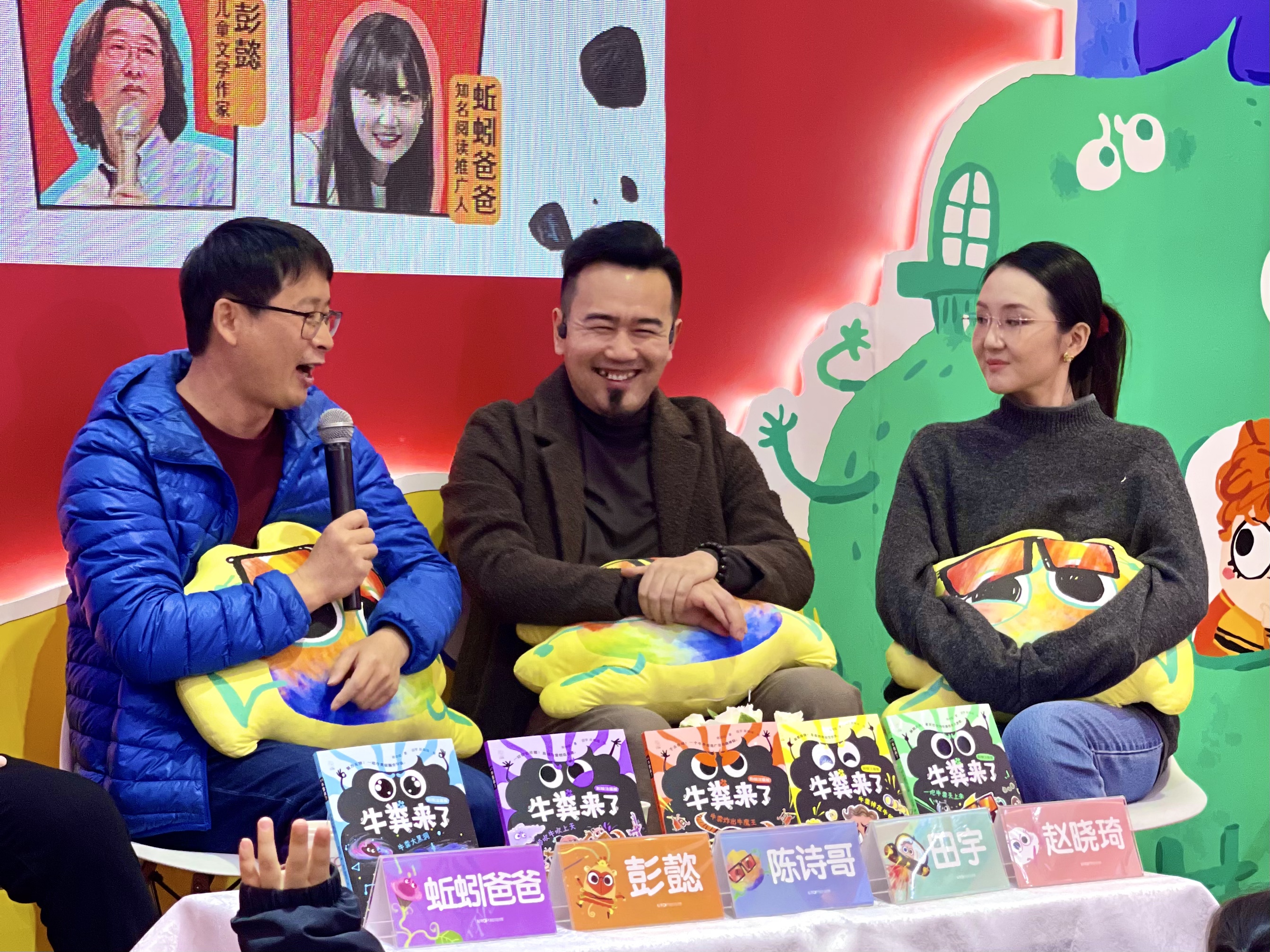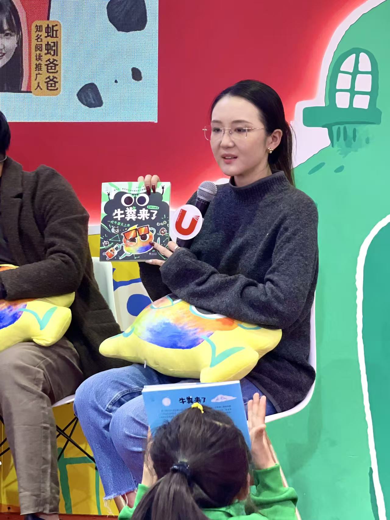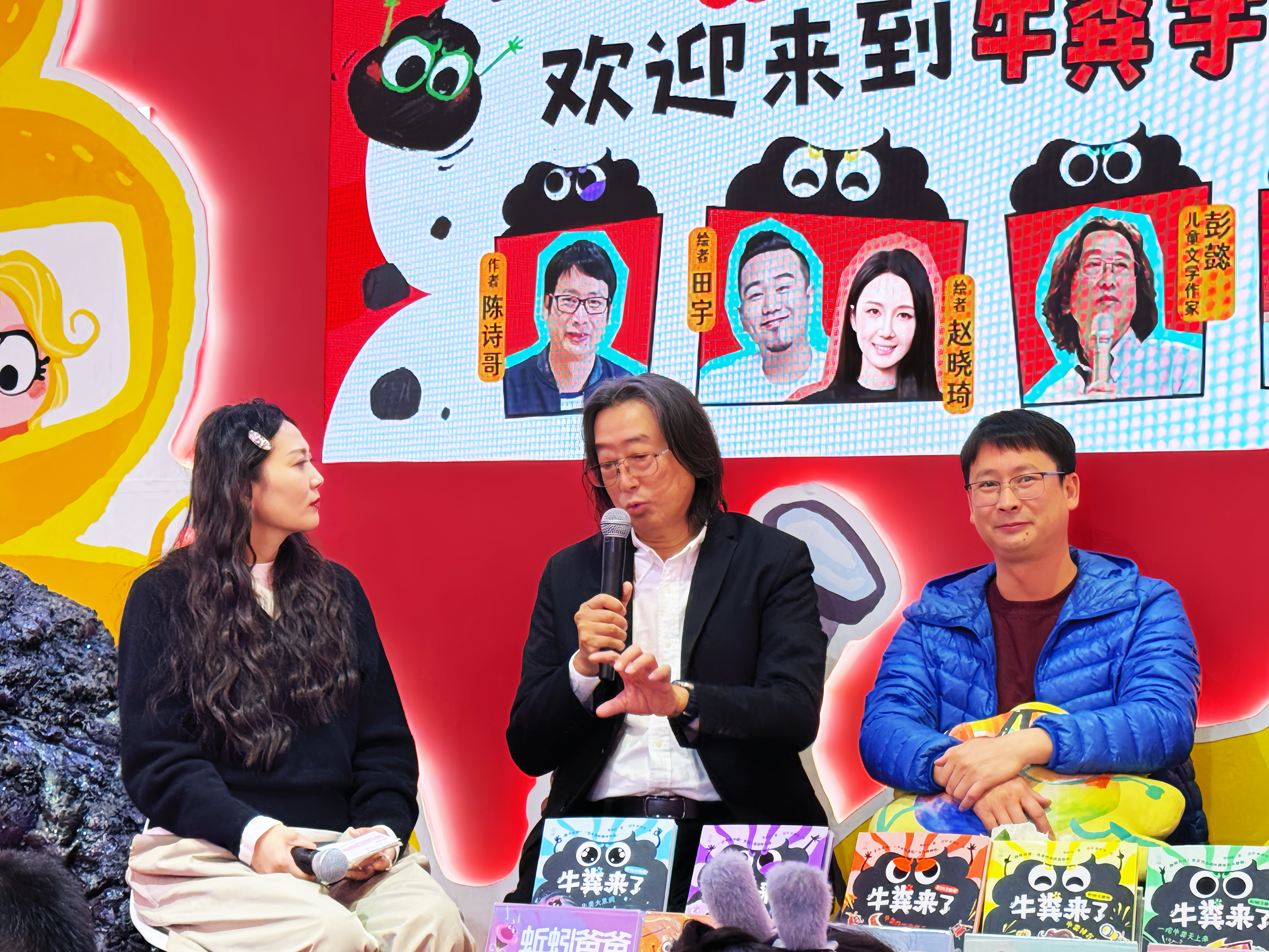 写出这套书的作者正是我国荒诞儿童文学的代表作家陈诗哥,他曾荣获全国优秀儿童文学奖、冰心儿童文学奖等多项大奖,同时也是一位“课本作家”。活动现场,陈诗哥提到,“很多人对牛粪有误解,认为它又臭又脏,其实不然,牛粪不仅不臭,还有很多用处。”随后,他以切身经历和现场读者分享,他出生和成长的那个像牛粪般平凡的小山村,他看到人们用牛粪生火取暖、烹饪美食,发挥牛粪的各种功用。“我认为万物平凡如牛粪而美如神,也由衷地希望所有朋友都能感受到这种万物之美、平凡之美,所以我写出了这套‘牛粪来了’。”