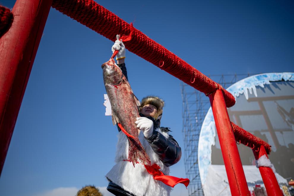 来自福州的摄影爱好者柯泽鹏说:“我在纪录片里看过冬捕,现场感受很不一样。好像能听见冰层下的涌动,那是生命的力量。”