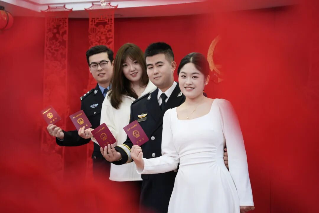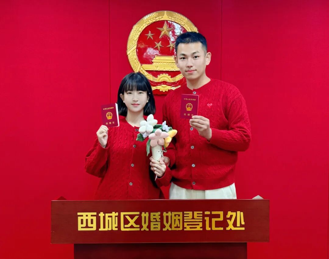 一对来自内蒙古的警察新人,特意选在中国人民警察节这个特别的日子来北京旅游结婚,当天在西城区民政局婚姻登记服务中心完成结婚登记。他们感慨道:“西城区的婚姻登记服务既暖心又贴心,让我们深切感受到了西城民政为民服务的温度。我们作为祖国北疆的警察,也将持续发扬蒙古马精神,始终心里装着人民,让服务跑在需求前面!”