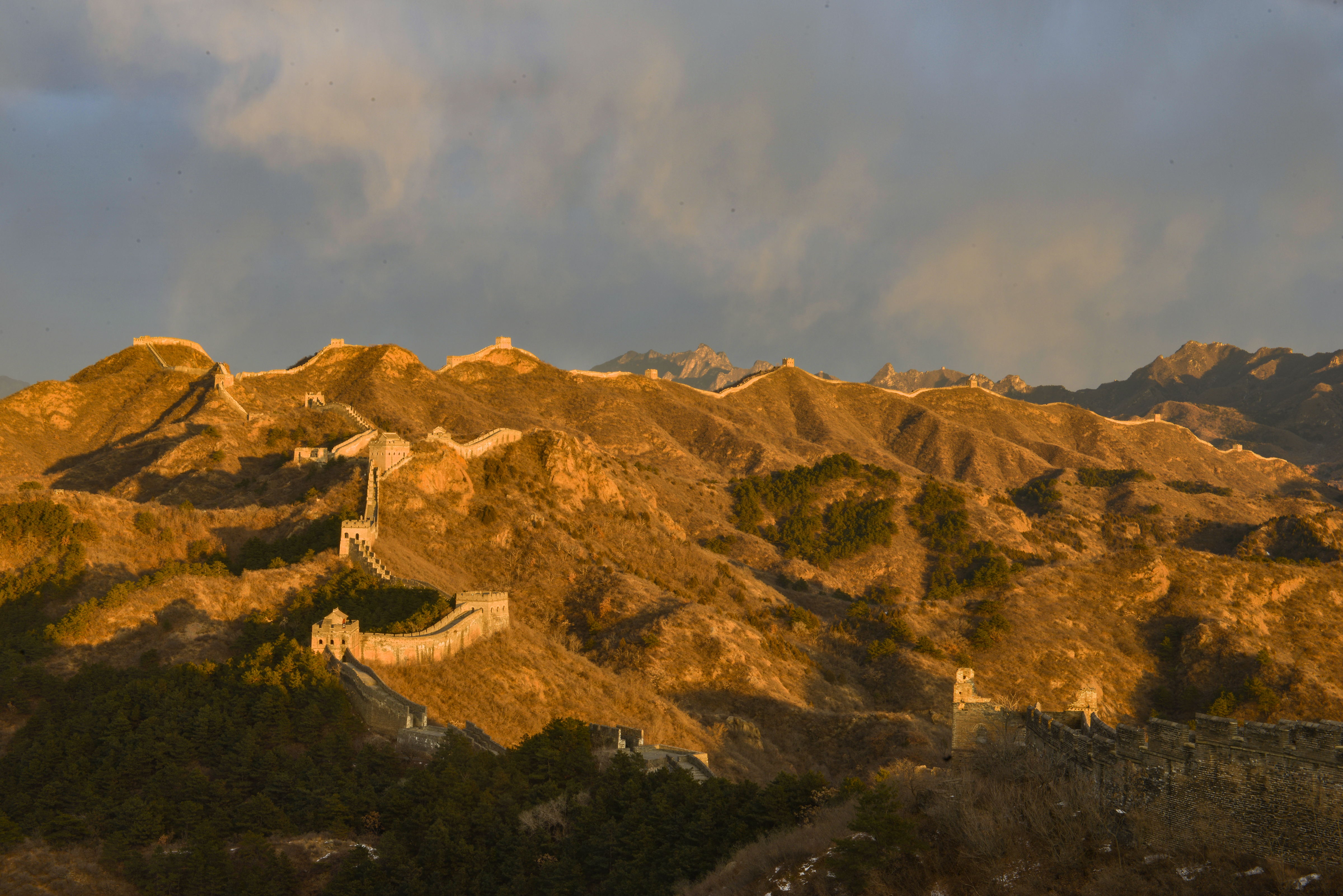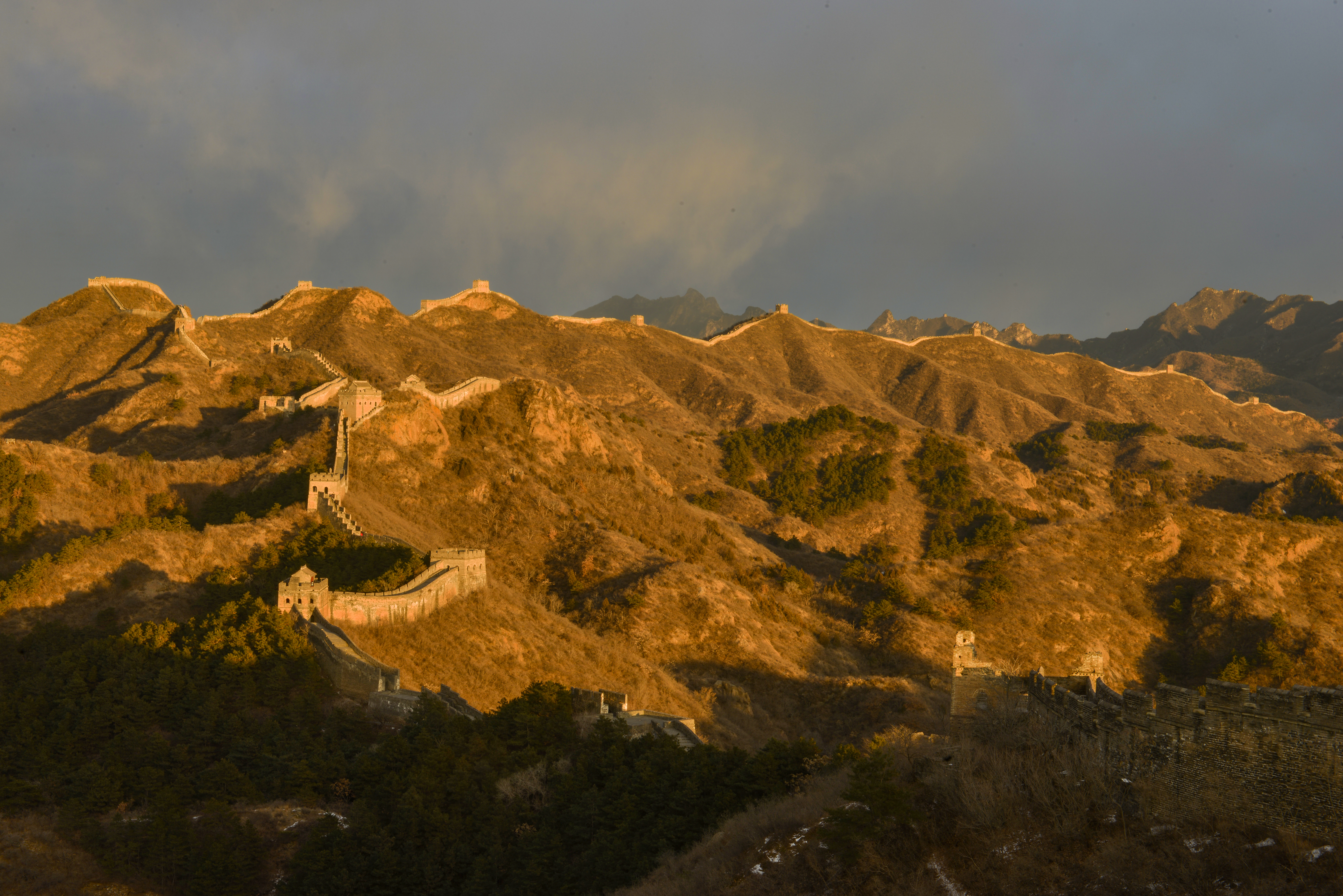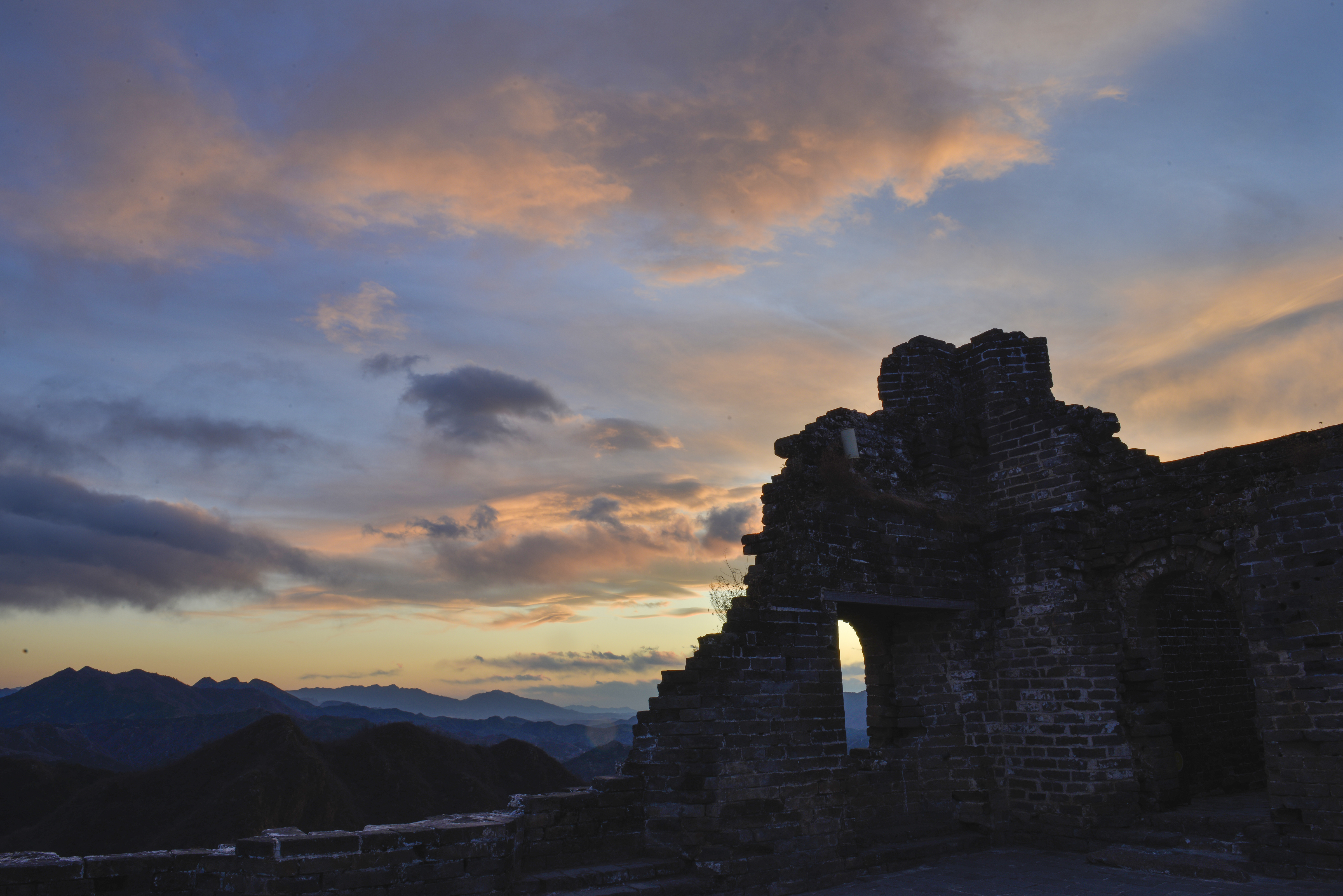 河北承德:晚霞染长城