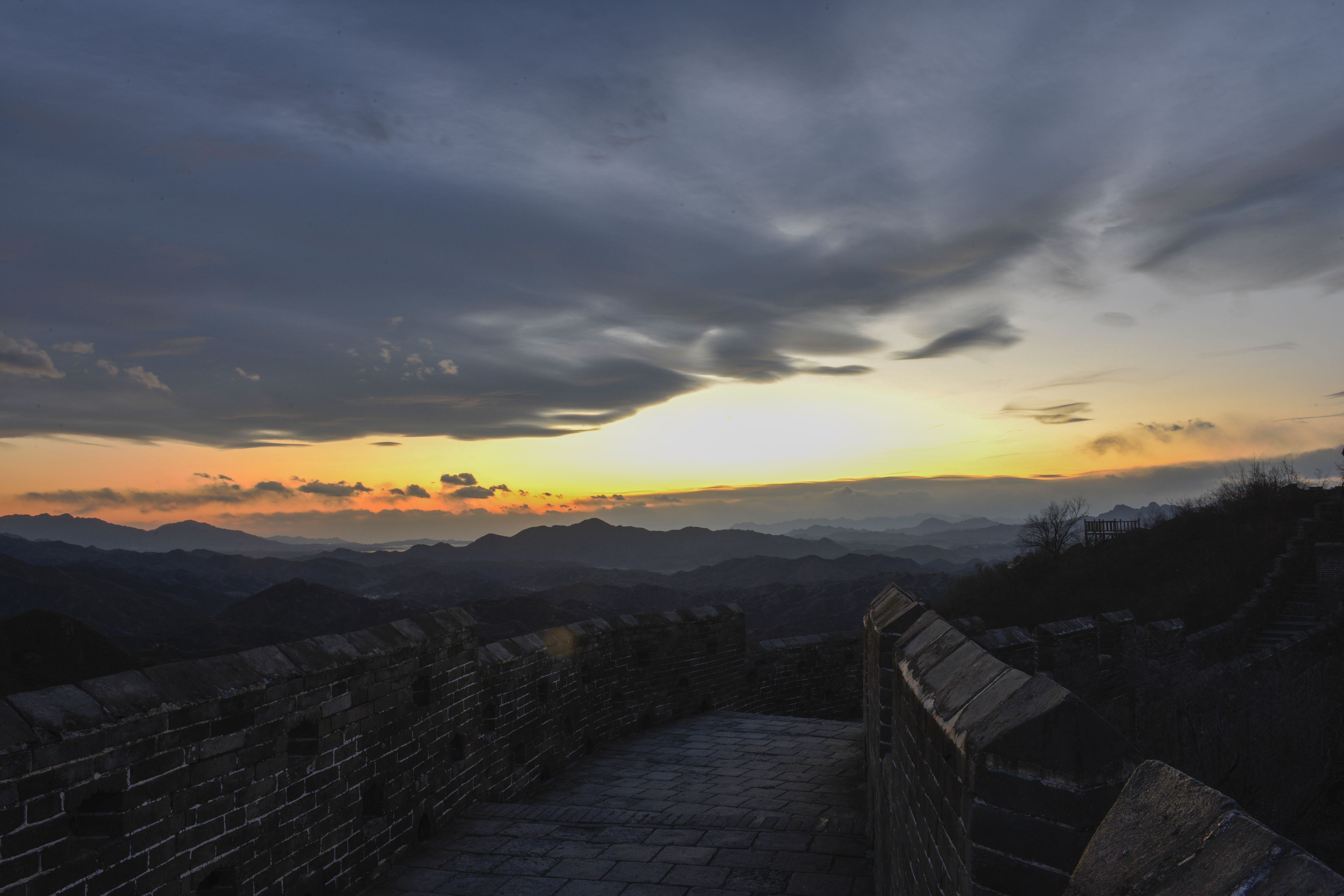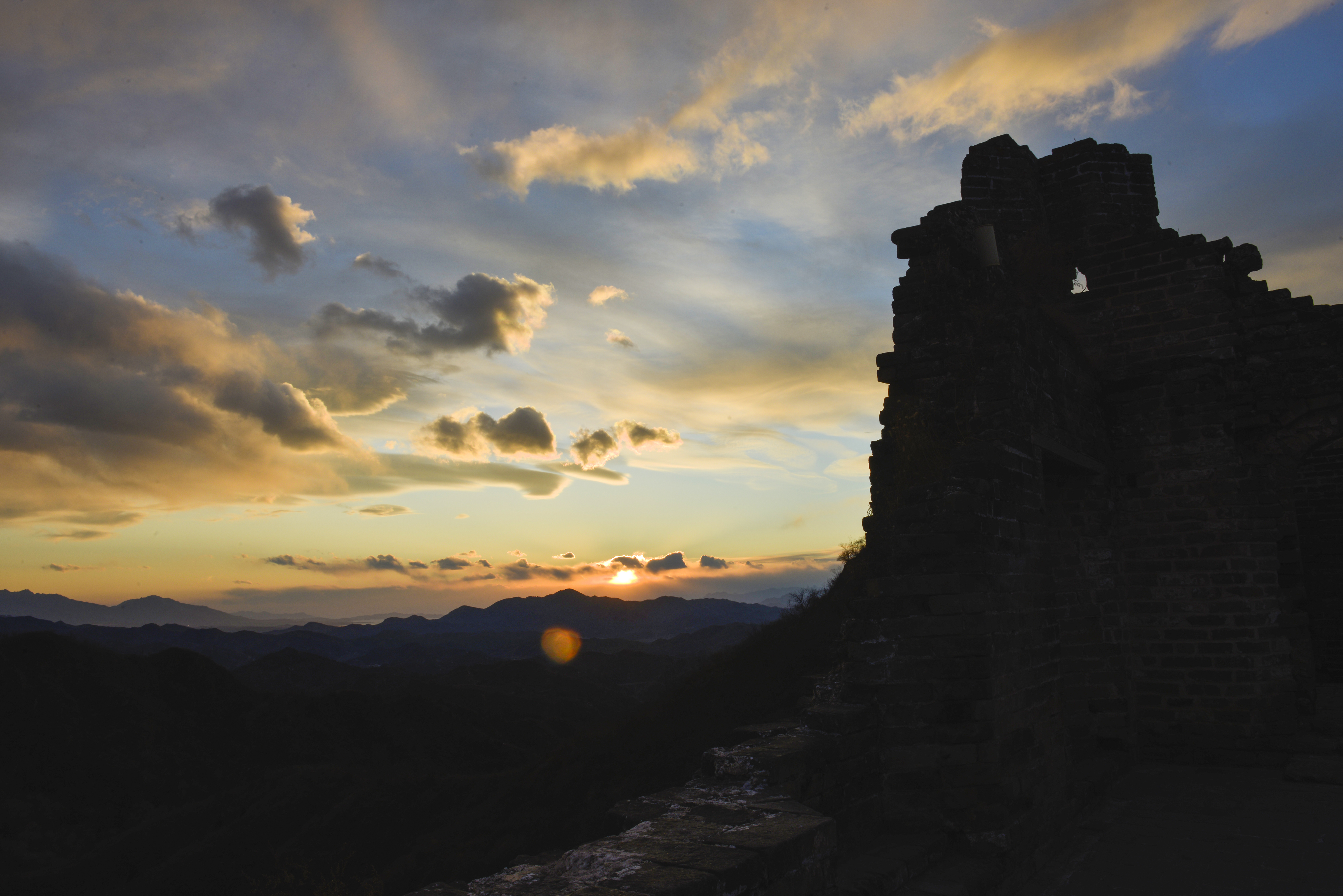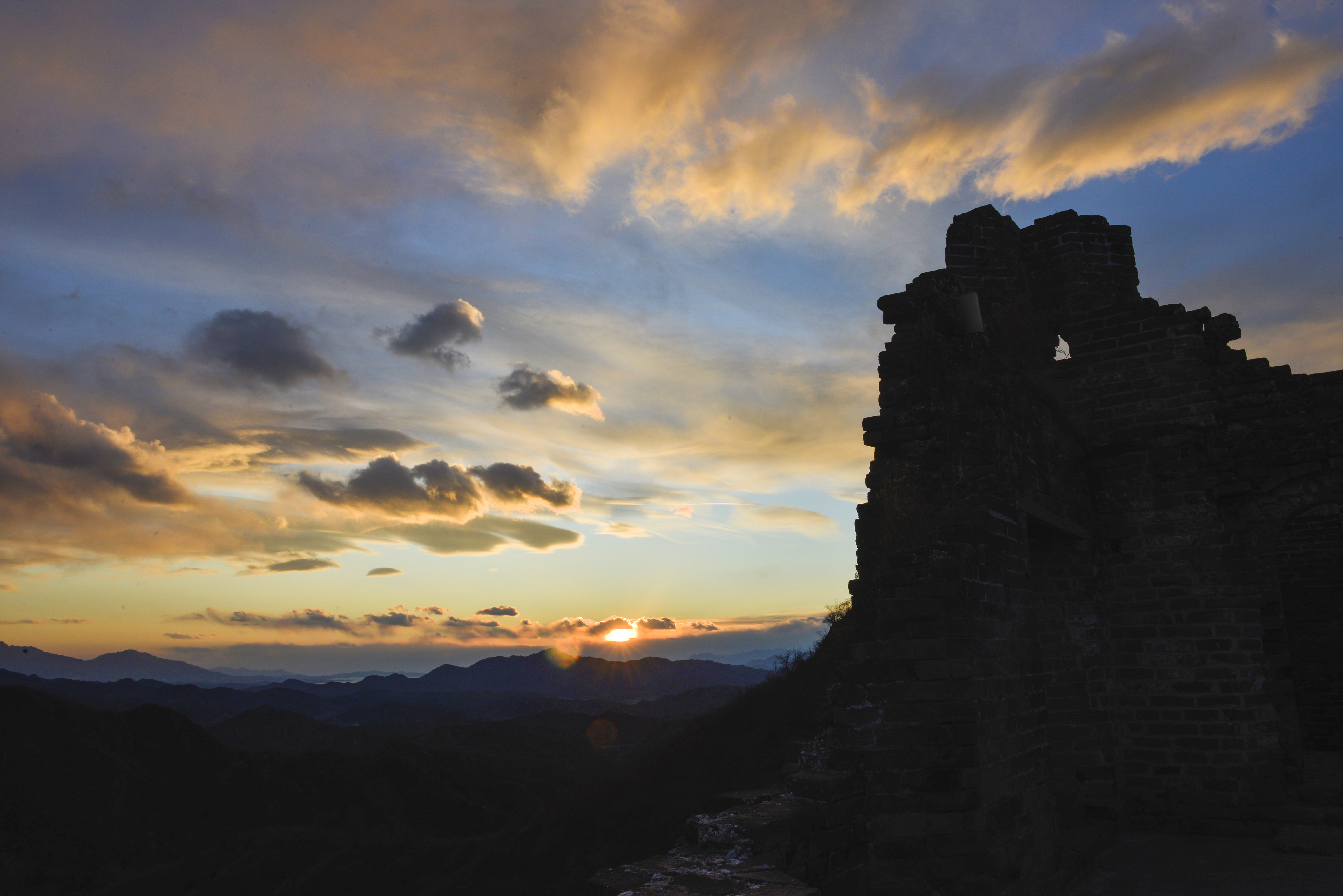 河北承德:晚霞染长城