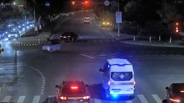 两个路口,10辆私家车接力默契神同步,齐心为救护车让行。