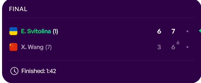 第二盘前12局,双方各自保发,但过程都很艰难。比赛进入“抢七局”。王欣瑜先拿到“迷你破发”,3比0。对手连续追分后反超,4比3。最终,斯维托丽娜以6比3、7比6(6)击败王欣瑜。王欣瑜本场拿到4次破发机会,全部被对手化解。