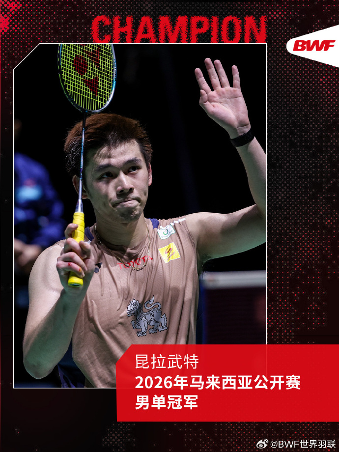 恭喜昆拉武特夺得2026年马来西亚公开赛男单冠军,恭喜石宇奇获得亚军!