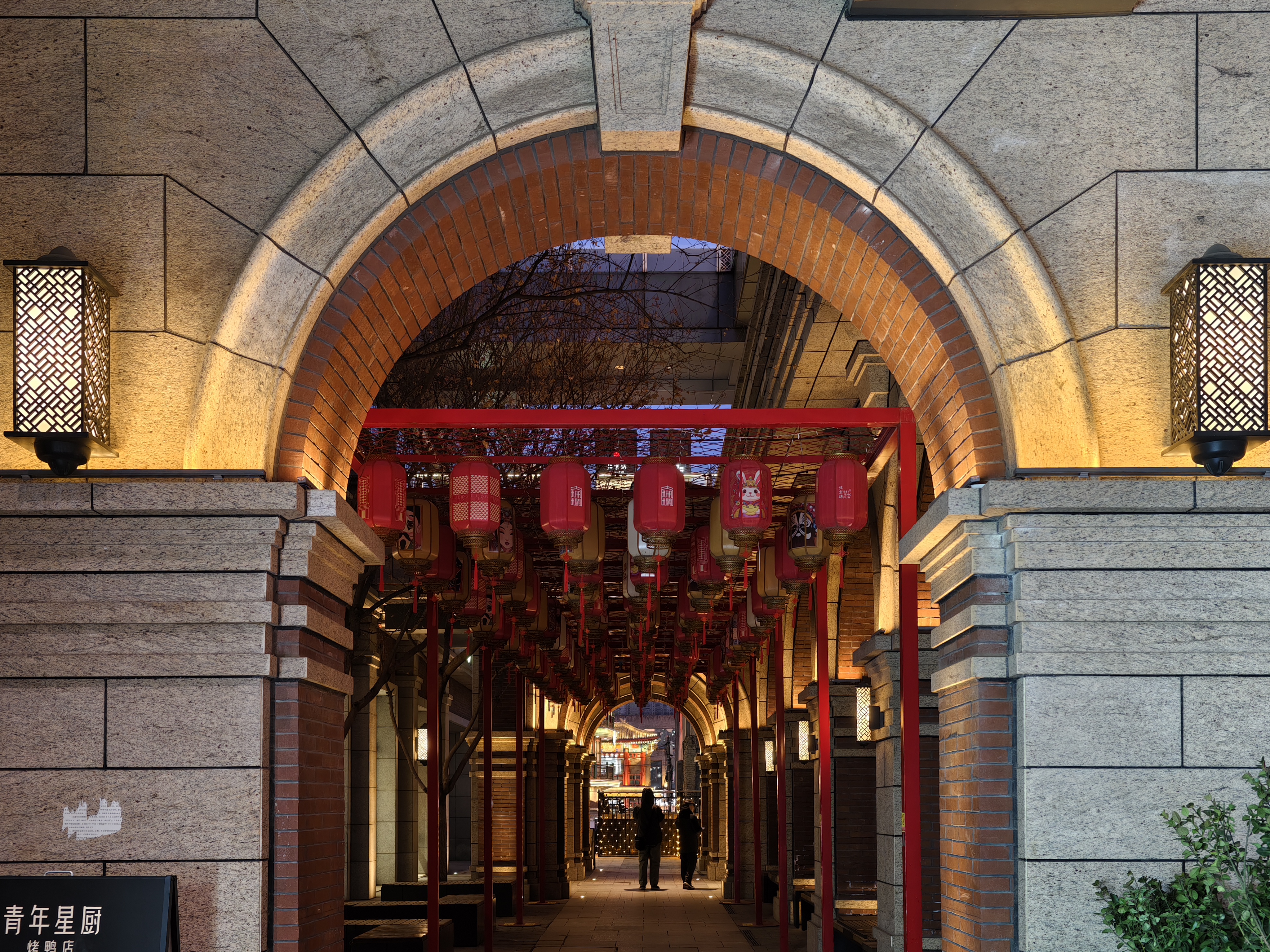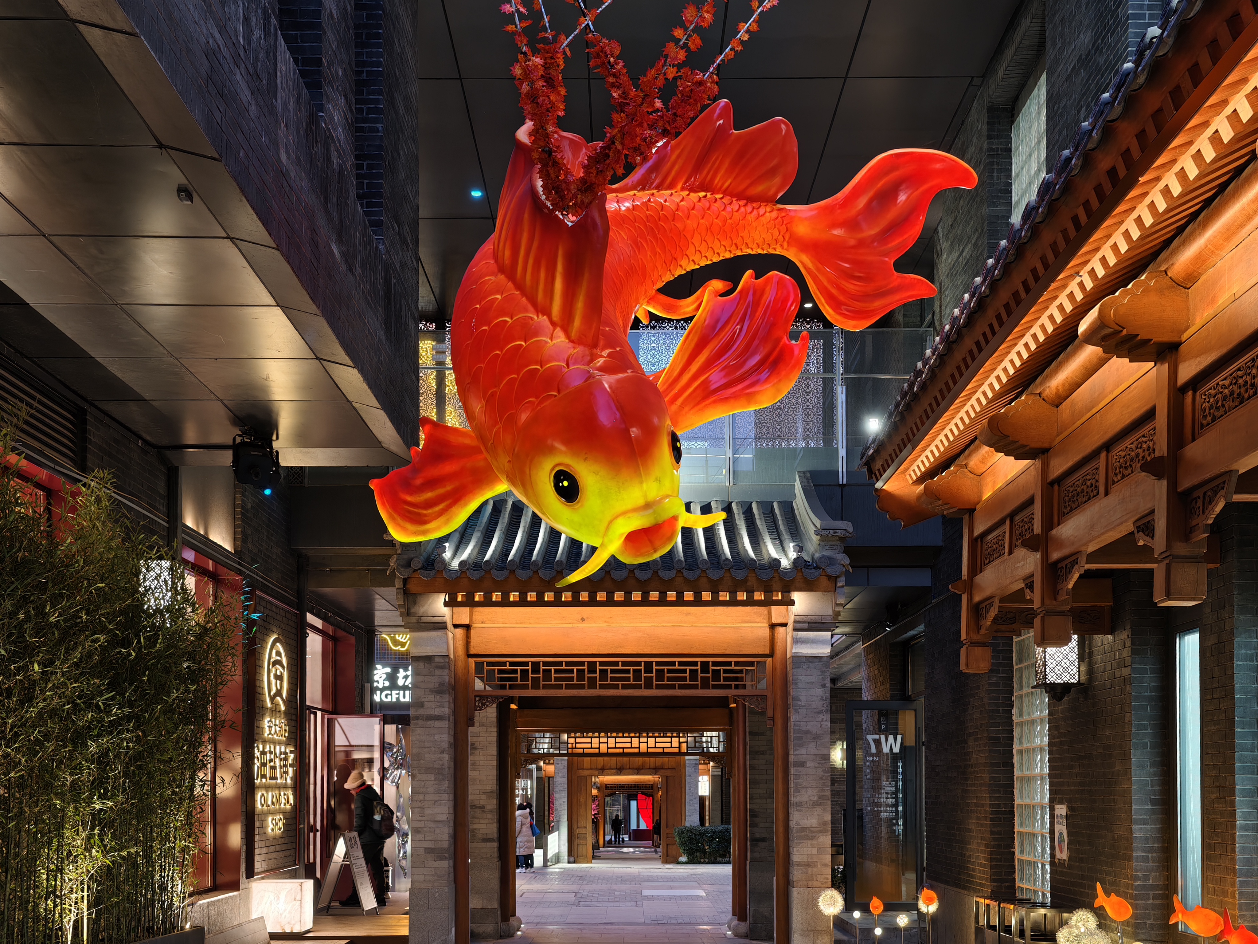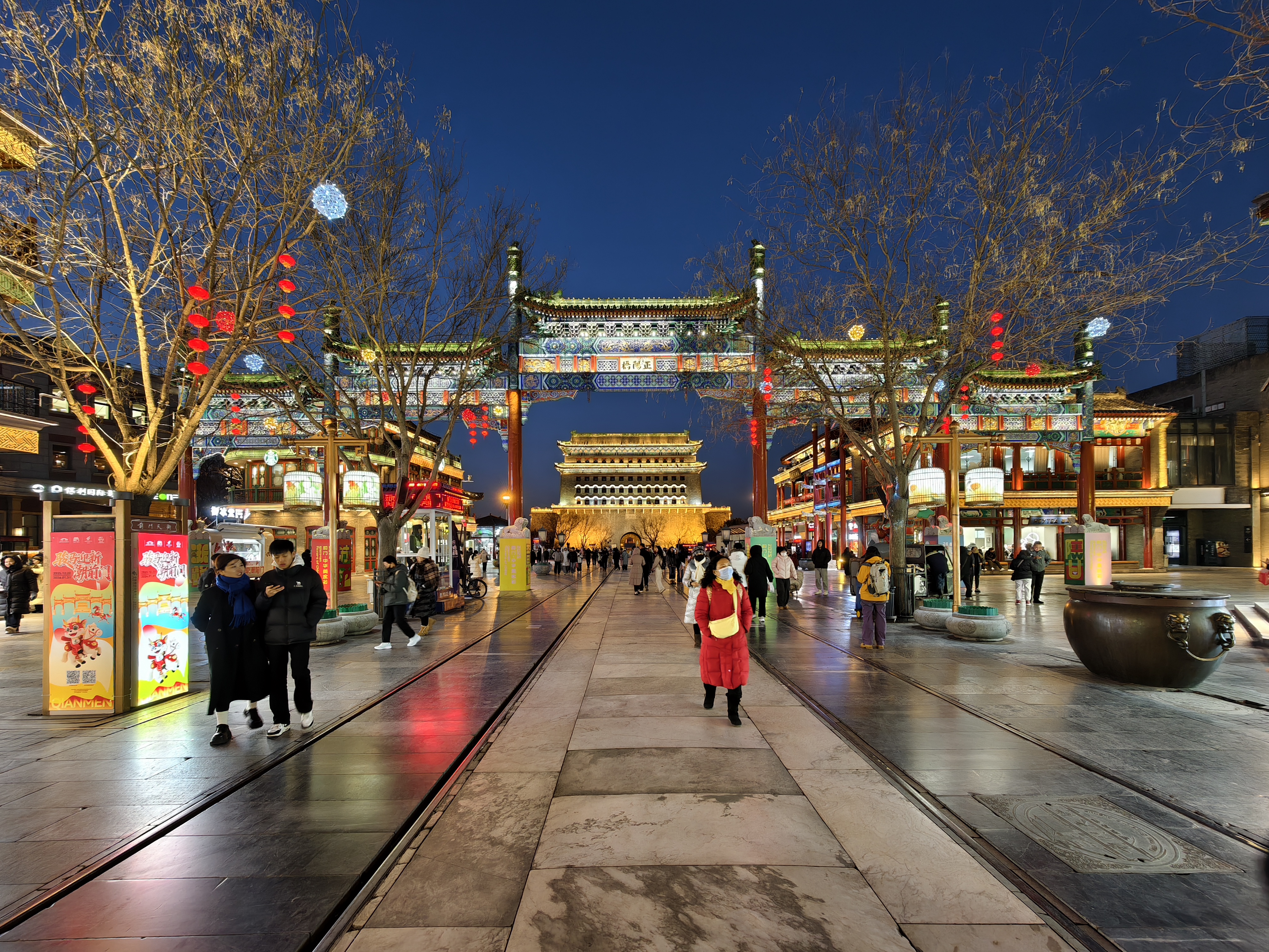 1月11日晚,位于前门大街的北京坊内灯火通明、人潮如织,各种装饰张灯结彩、年味儿十足。