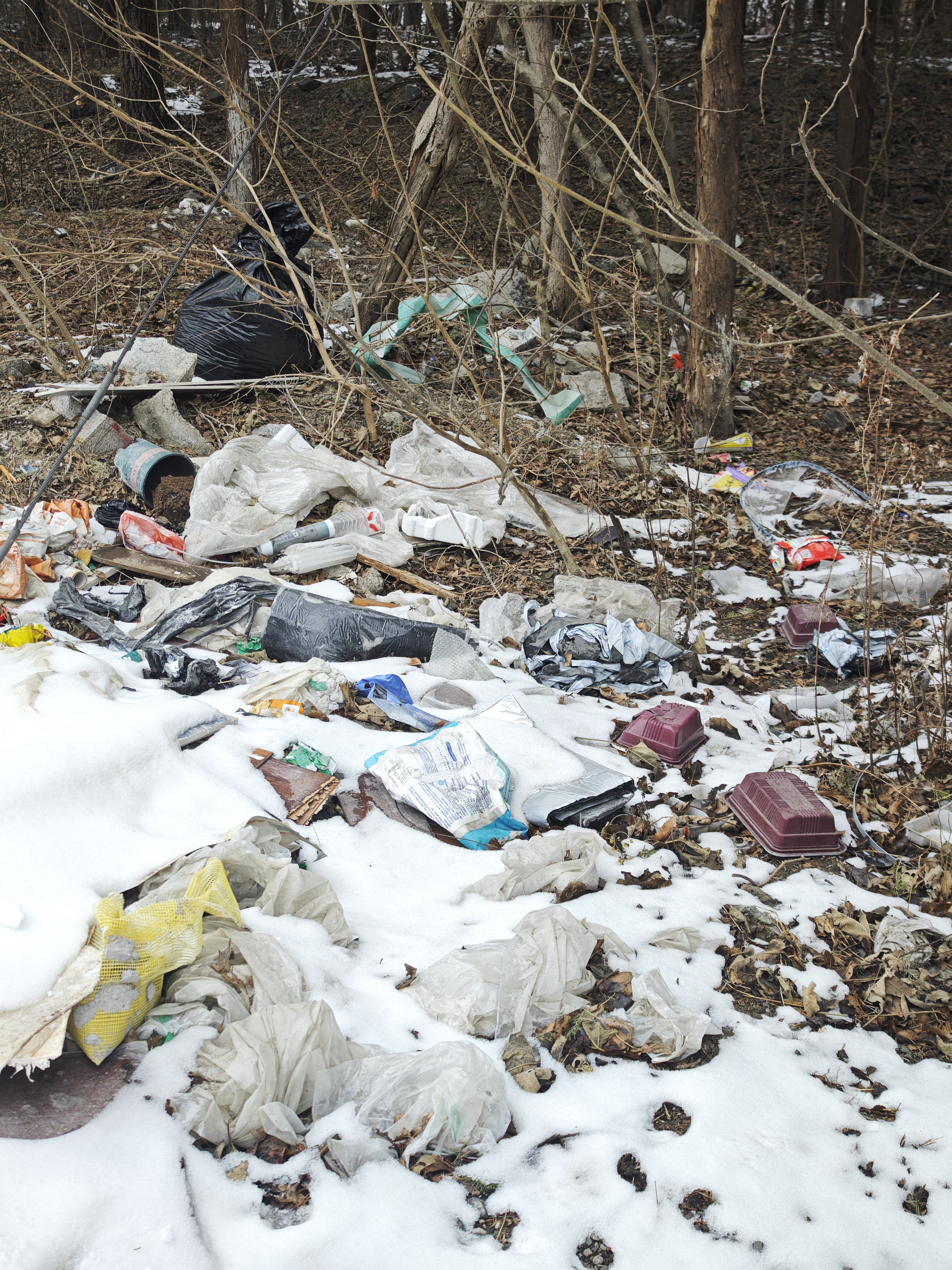 戒台寺周边的大灰厂路从山林间穿过,是连通山区与城区的交通要道,来往车辆频繁。然而大灰厂路沿途的山林里,每隔一段距离,就能看到成堆的垃圾。这些垃圾里相当一部分是生活垃圾,把一个个黑色大塑料袋或者尼龙袋塞得满满当当。此外,废旧的大件家具、锥桶、木板等也被倾倒于此。