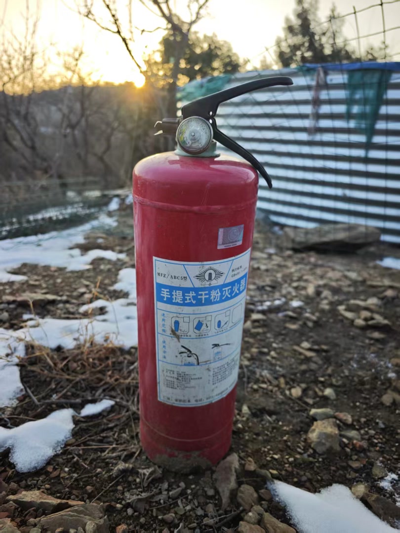 然而,实际情况不容乐观。在香八拉补给驿站附近有一处蓄水池,旁边露天放置着两个灭火器。其中一个灭火器的指针指向黄色,另一个灭火器的喷管缺失,压力表里全是水迹,依稀可以看出指针指向了红色。