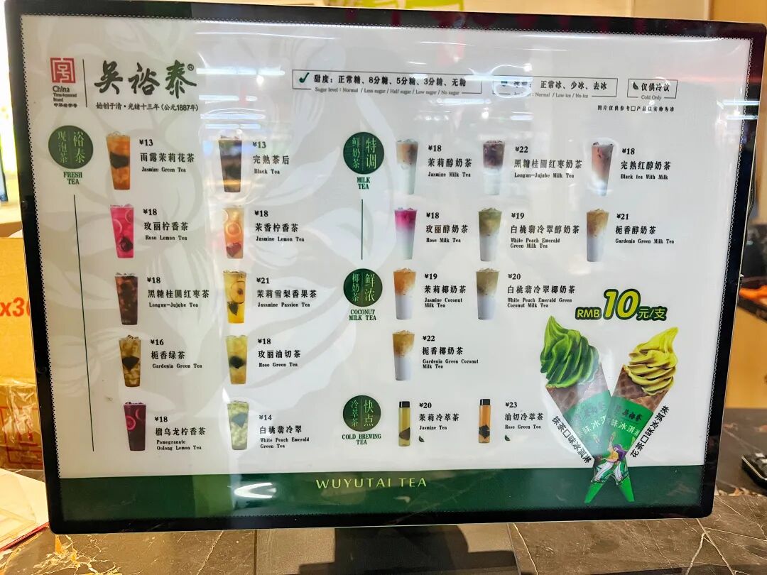 这份老少皆宜的受欢迎度,藏在“守正创新”的经营哲学里。茉莉奶茶选用多次窨制的经典茉莉花茶,严格把控茶汤与奶的配比,实现“茶奶相融、互不掩盖”;桂圆红枣奶茶先将食材热泡出味再调和牛奶,锁住天然香甜。在此基础上,吴裕泰创新采用低糖、微糖默认设置,并提供无糖选项,拒绝人工色素与香精,贴合健康消费理念。