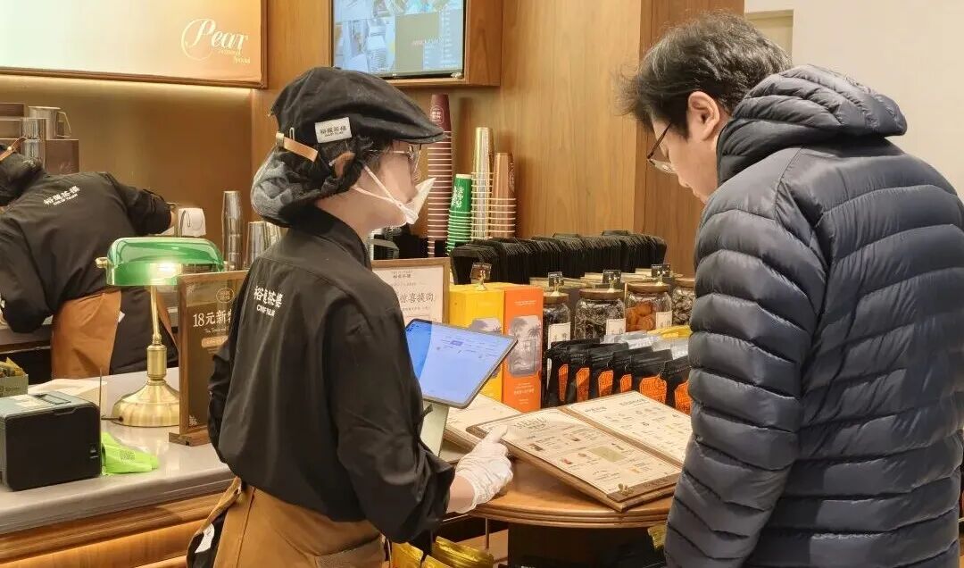 “早就听说这里的锅煮奶茶很有特色,特意趁午休过来打卡。”正在点单的陈女士指着菜单笑道,“岩韵大红袍搭配桃胶,光听名字就很有吸引力。”点单制作区,店员正将排着队的饮品杯逐一填满,空气中飘着茶香和奶香味。作为茶楼的招牌系列,版纳溏心桃胶·临沧滇红带着熟果与番薯的甜香,岩韵大红袍款则交织着岩韵、坚果与蜜兰香,每一口都能尝到风土赋予茶叶的独特个性。