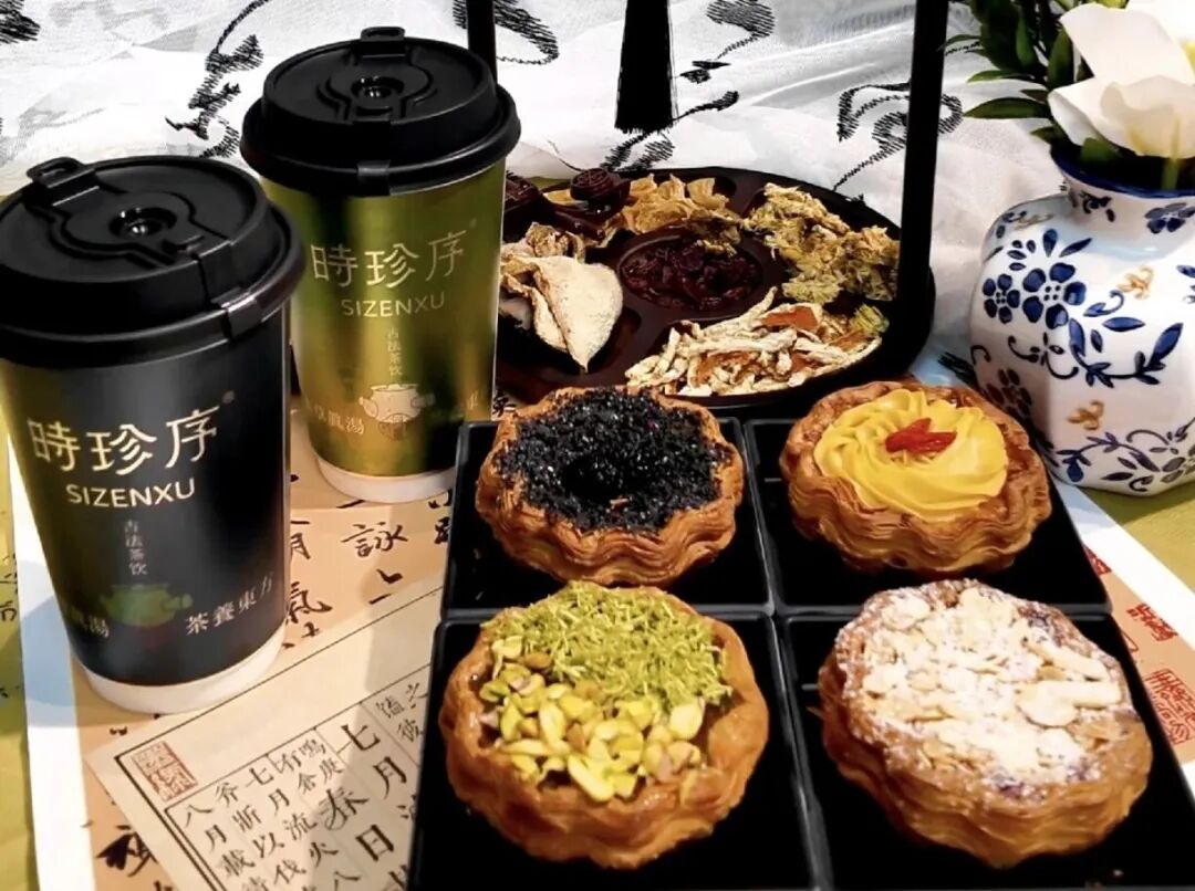 品牌坚持精选有效配方与优质食材,打破了年轻人对“中药材”的刻板印象,让传统养生变得好喝又时尚。针对冬季特点,门店还适度下调糖度,让口感更加清爽温润。而“心烦星人”“熬夜星人”“怕冷星人”等细分定位,也让枸杞、黄精、甘草等药食组合精准匹配不同人群的需求。不仅饮品如此,店内的烘焙点心也贯穿着“食养”逻辑。特色欧包将养生食材磨粉混入面团,百合蛋挞、黑芝麻蛋挞、玫瑰蛋挞等甜品同样人气高涨,每一口都带着温和的滋养之意。