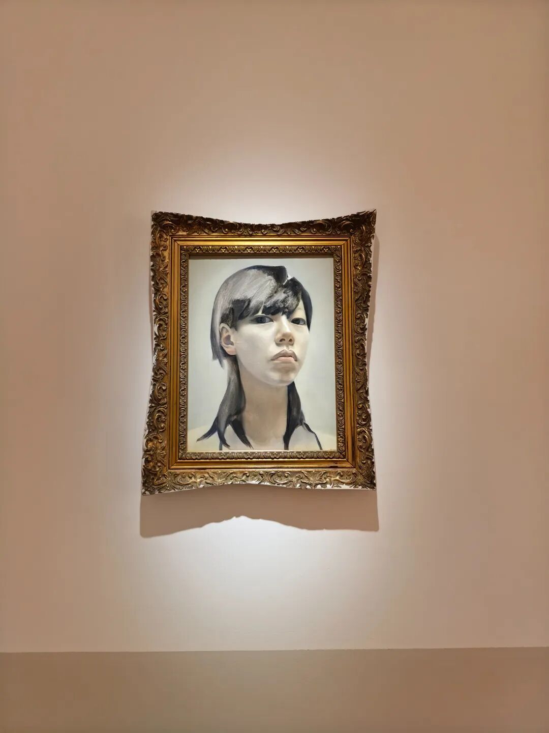 不同于上一代艺术家的绘画表达,细长的肖像,异形的画框,走廊尽头的放映机,浮光掠过的老电视……展览给我们的一个印象词是“充满躁动的好奇”。