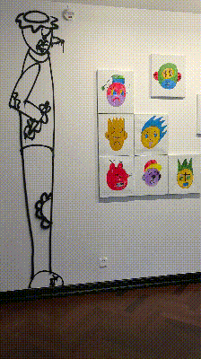 而传承自父辈的“简单线条”风格,又让我们在展览中感受到了艺术家“跳出束缚的快乐”。在本子上作画,在墙壁上作画,在瓷砖上作画,在时光的尽头作画。