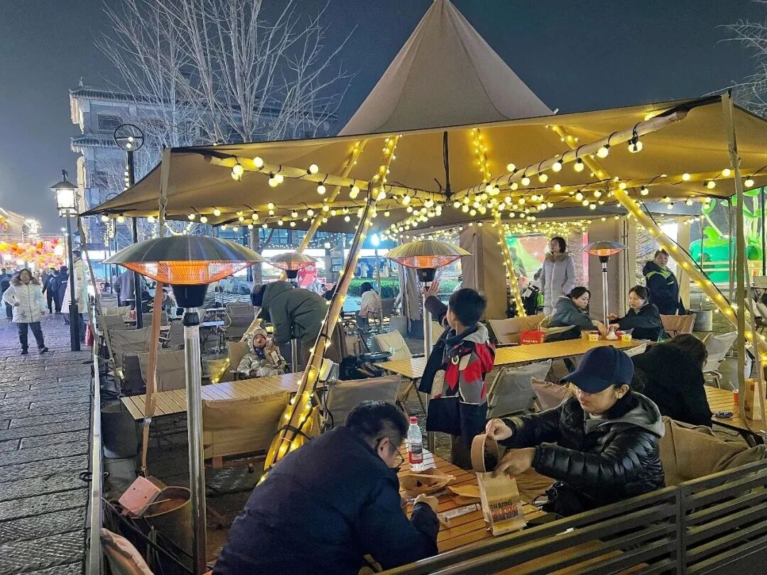 “天冷游客不爱在户外待着,我们就摆放了百余套露营帐篷和外摆桌椅,加装户外暖气,还完善了亮化设施,到了夜晚,摊位和帐篷上的串灯亮起,星星点点的灯光特别有氛围。”北京东方文化投资管理有限公司运营团队相关负责人介绍说。