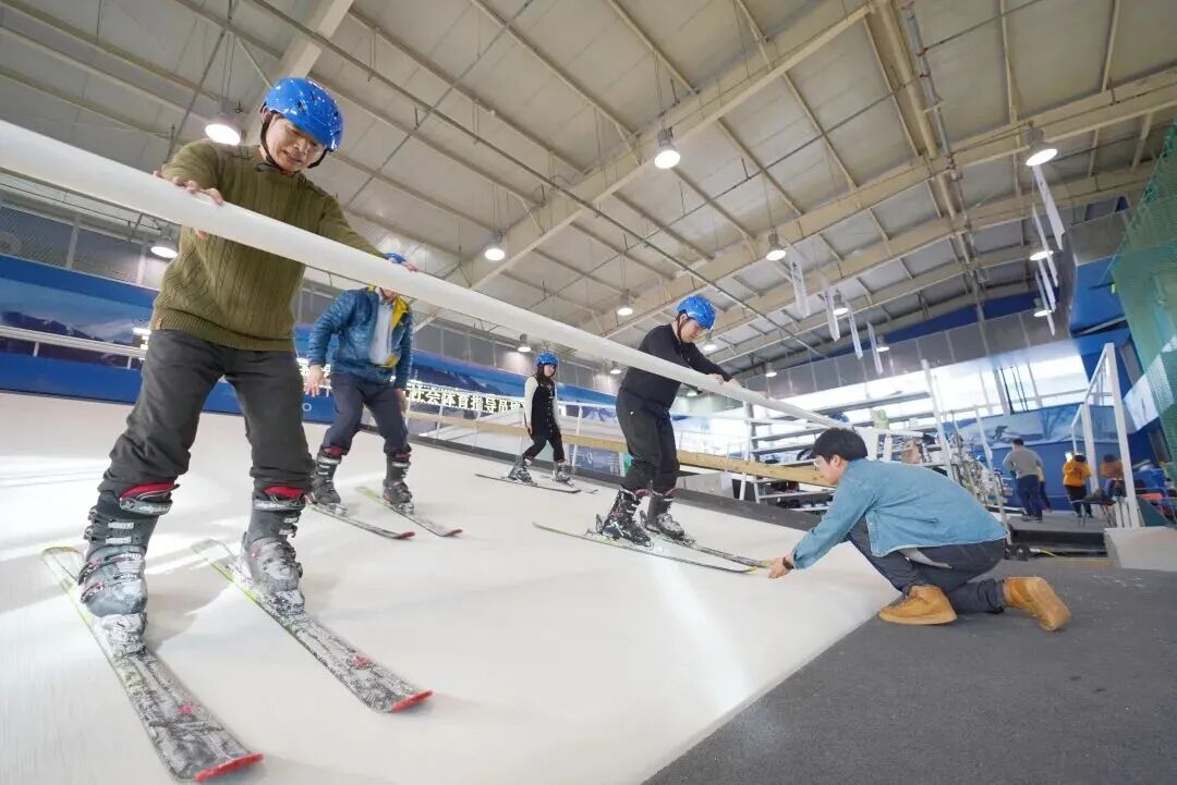 据了解,场馆占地面积1012平方米,高8米,配备4台原装欧洲进口的ARS高山滑雪回转训练设备,可模拟不同坡度和速度的滑雪场景,免去了换滑雪服、乘坐缆车的繁琐。馆内的高峰滑雪学校师资雄厚,不仅有国家队级别的教练亲自指导,还提供专业系统的一对一教学服务,滑雪教练全程陪同,可随时控制速度和坡度,帮助学习者在短时间内提升滑雪技能。同时,场馆防护设施完善,配备齐全的头盔、护具等,让不同年龄段的滑雪爱好者都能在安全的环境中,感受滑雪运动的激情与乐趣,成为冬夜释放活力的绝佳去处。