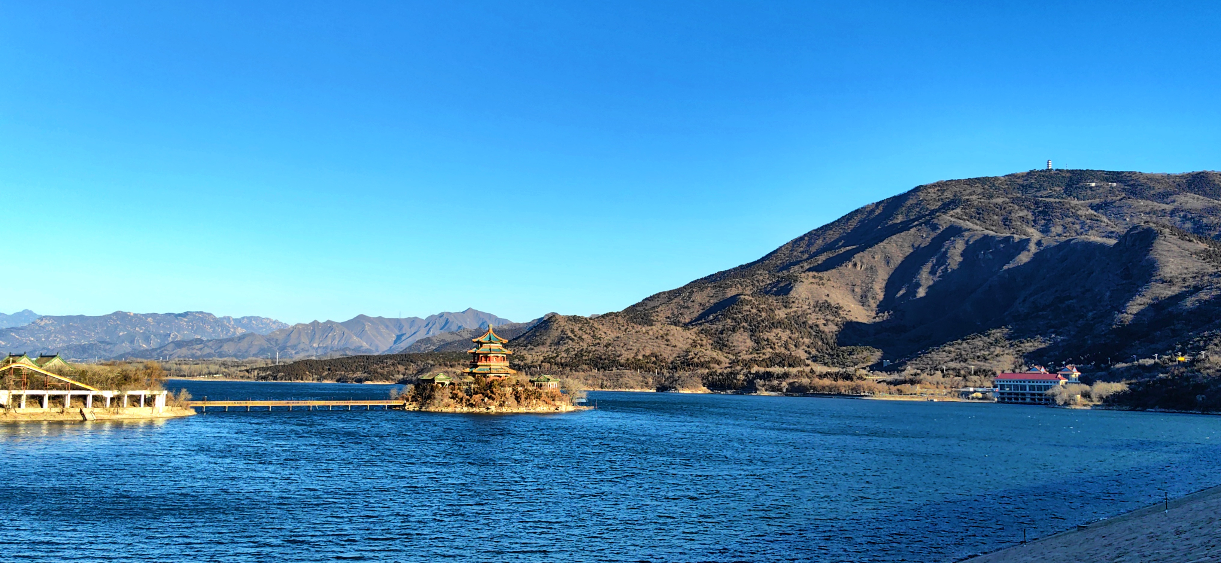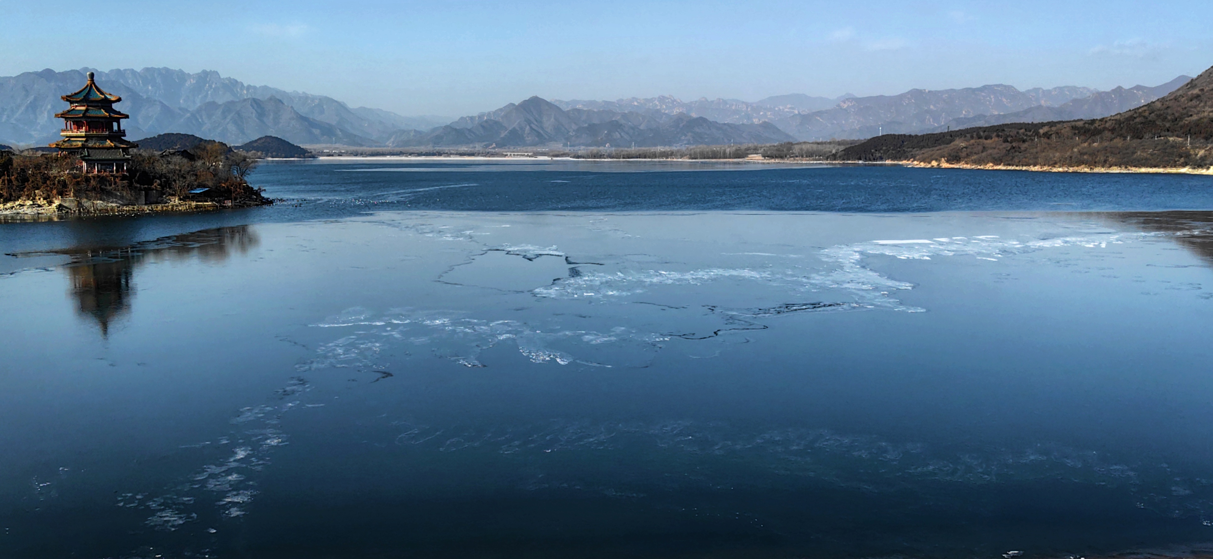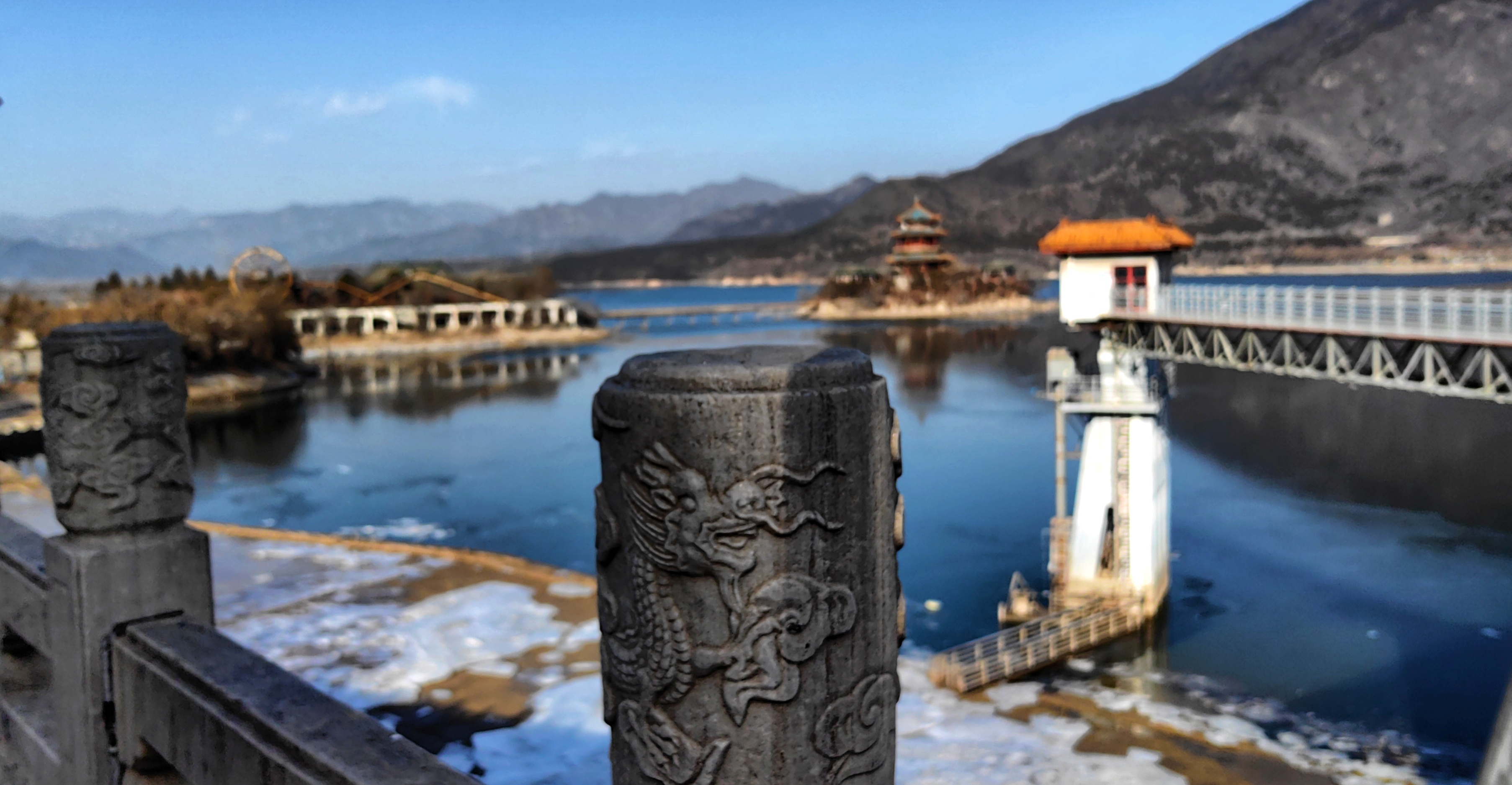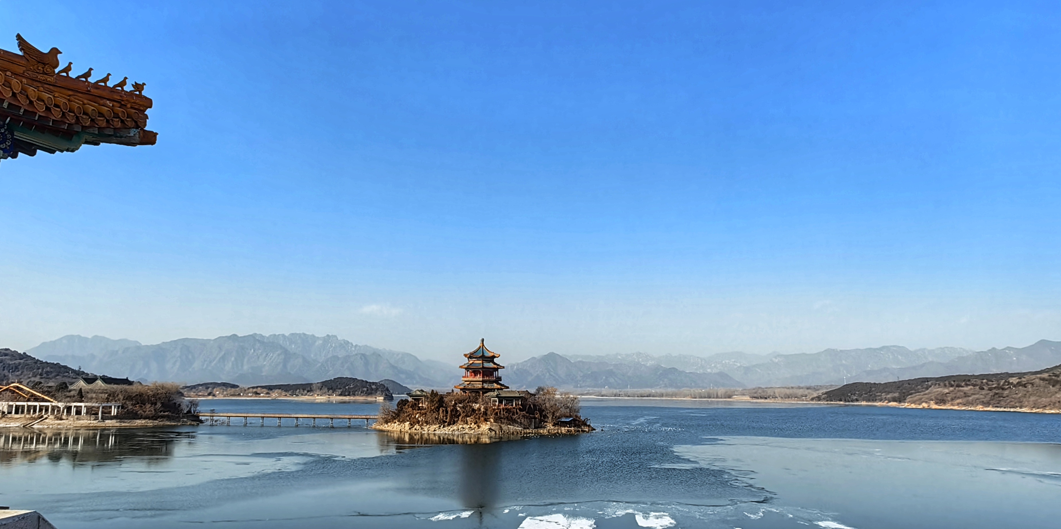 冬日十三陵水库:龙吟冰封镜,孤亭立寒渊