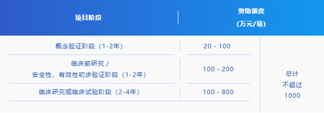 申报时,申请材料须明确各阶段的“具体研究任务”及各阶段“里程碑节点”(具体的时间点与研究成果)。里程碑设置应参考各阶段目标,例如概念验证结论、知识产权产出及约定、与同类型产品或技术安全性、有效性对比、研究者发起的临床研究(IIT)/药物注册临床试验(IND)申请情况、试验参与者(受试者)获益、临床应用申请情况等。