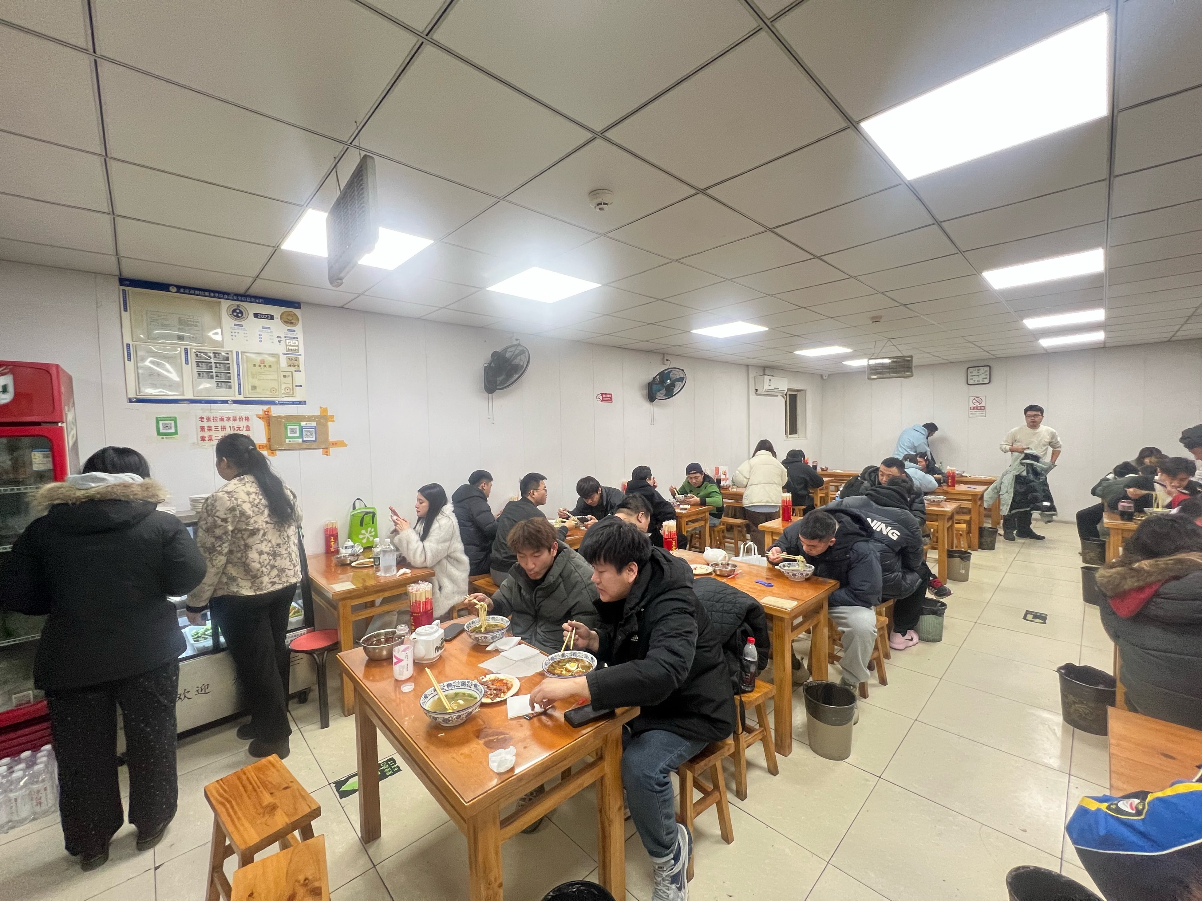 小店没有精致的装修,17张四人餐桌摆成三列,陌生人拼桌而坐在这里是常事。记者注意到,顾客中有刚下班的白领,有穿着校服的学生,也有行色匆忙的骑手。