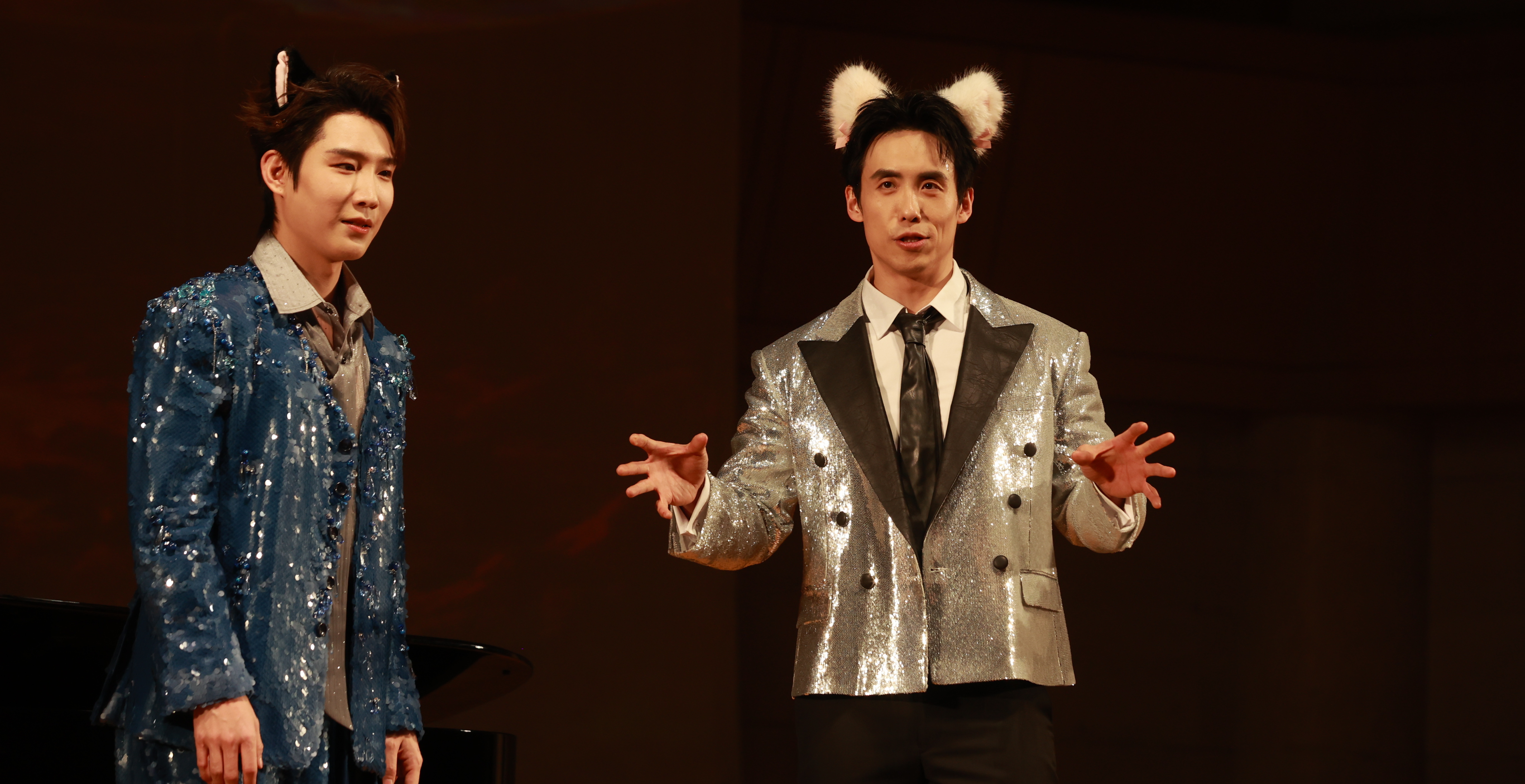 音乐会下半场转向更宏大的叙事舞台。从拉赫玛尼诺夫歌剧《阿列科》中深沉咏叹的《人们都已入睡》,到莫扎特《唐璜》中鲜活生动的二重唱与咏叹调,洪之光逐步释放声音的戏剧能量。音乐剧部分中,《悲惨世界》的《星辰》肃穆而坚定,《我,堂吉诃德》中的《不能成真的梦》充满赤诚的追梦勇气。在中文版《剧院魅影》中担任女一号的杨陈秀一,以及音乐剧演员奇煜作为演出嘉宾现场助阵。