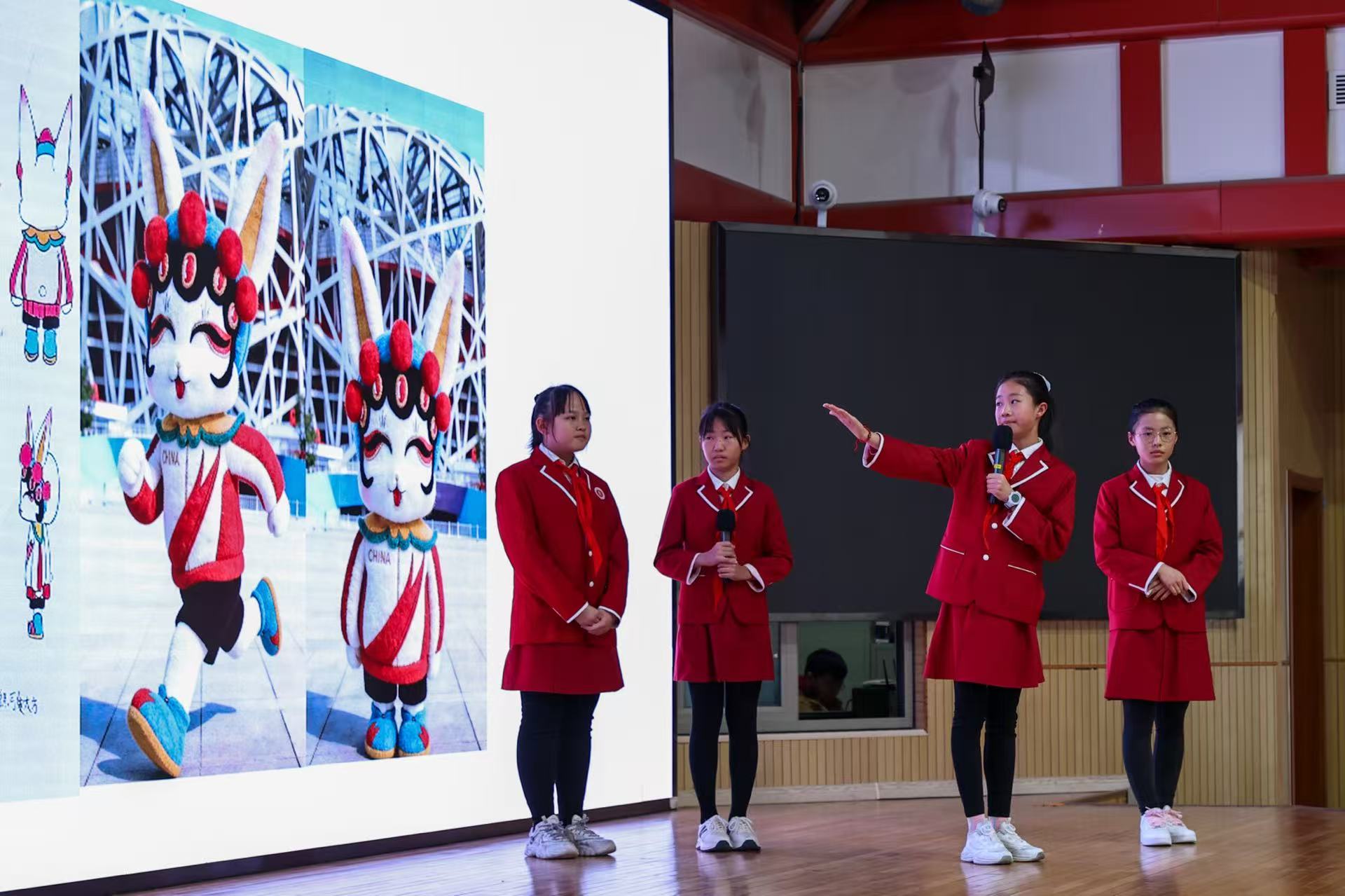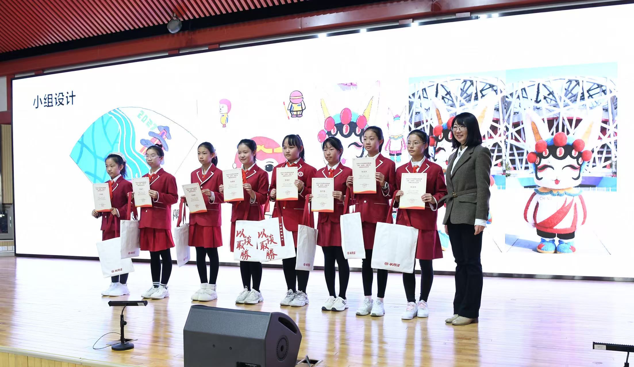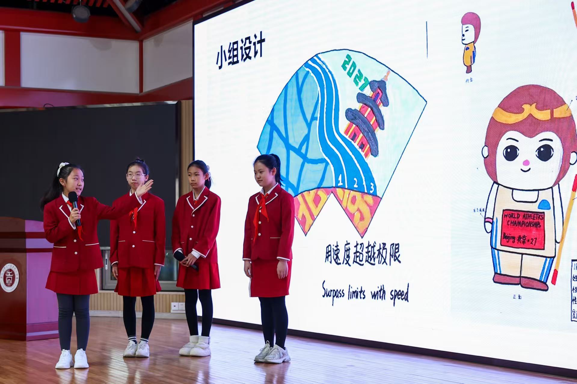 在互动分享环节,贡院小学的学生代表们呈现了一系列充满童趣与创意的赛事IP设计方案。有的巧妙将“北京”二字进行象形化处理,融入会徽设计;有的以经典卡通形象孙悟空为灵感,打造了活力四射的吉祥物“京跃”;还有融合京剧元素与运动活力的兔子形象“京兔兔”,以及紧扣2027羊年主题、寓意温暖祥瑞的“暖阳”“祥祥”等作品。这些构思新颖、情感真挚的设计,不仅展现了青少年对田径运动的热爱,更流露出他们对家乡即将承办国际大赛的由衷自豪。组委会为参与分享的学生颁发了纪念证书,以资鼓励。