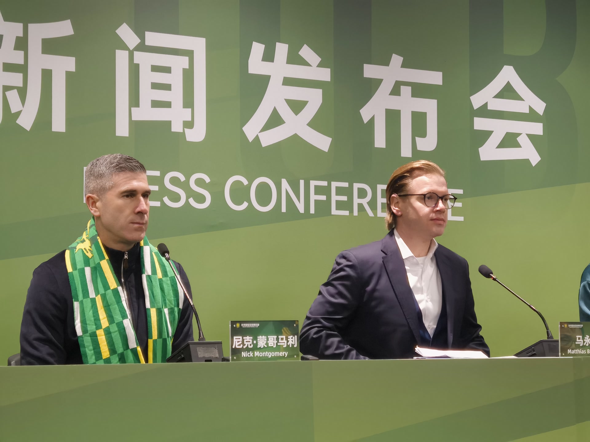 这次,尽管翻译还是付豪,但坐在发布厅C位的已不再是西班牙名帅塞蒂恩,而是马永明和蒙哥马利。