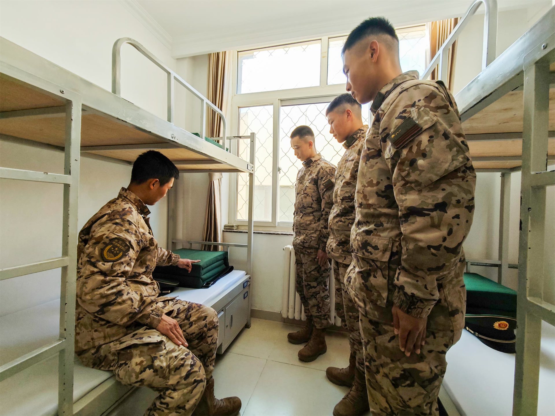 “豆腐块”被子棱角分明,物品摆放整齐划一,衣柜里的衣服摆放有序。一场严格的内务评比,不仅是对生活细节的检验,更是对作风养成的锤炼。新战友们在相互学习、相互比拼中,养成“事事讲标准、处处求规范”的习惯,将严谨细致的作风融入日常,从点滴之处塑造军人模样。
