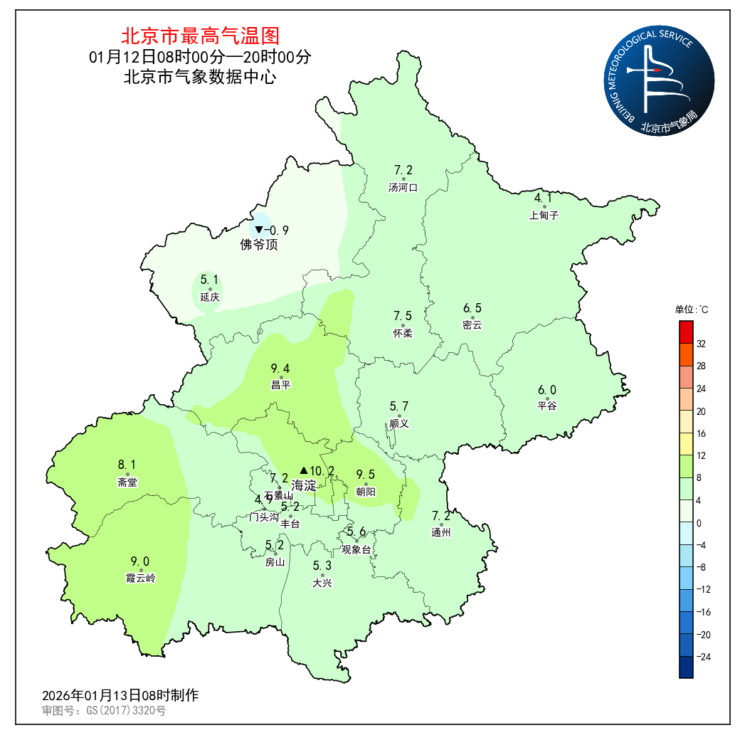 13日夜间:多云;南转北风1、2级;平原地区最低气温-6℃,山区最低气温-12~-8℃;最大相对湿度70%。