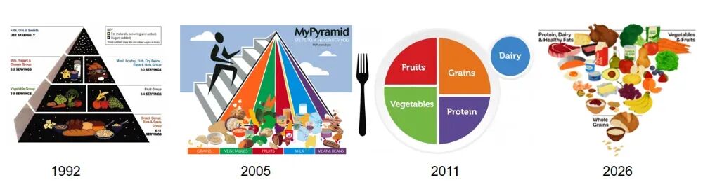 为了应对营养与慢性病防控,以前的健康教育、膳食指南DGA宣传通常都是在既有食品体系中引导公众“做出更健康的选择”,强调营养素比例、膳食平衡与个人责任。