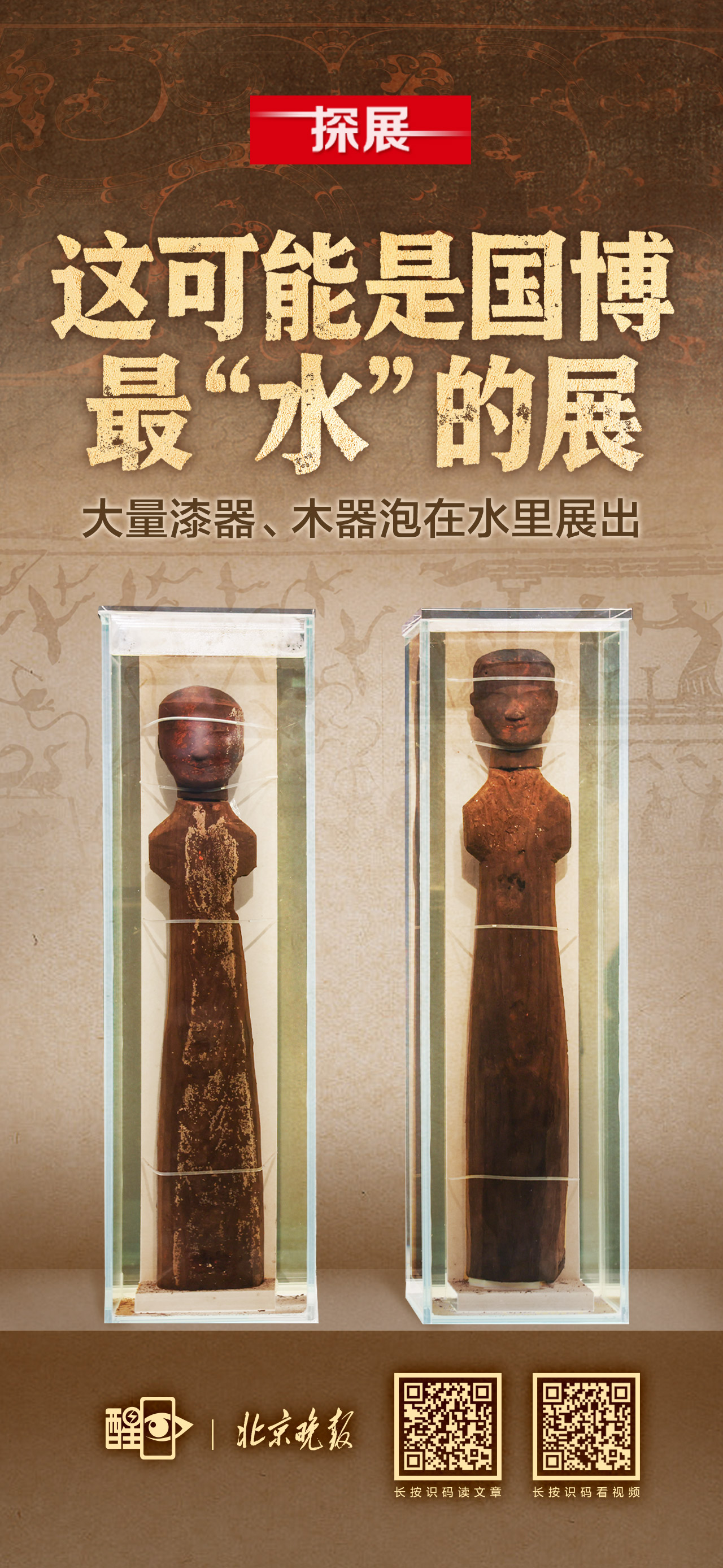 大量漆器、木器泡在水里展出