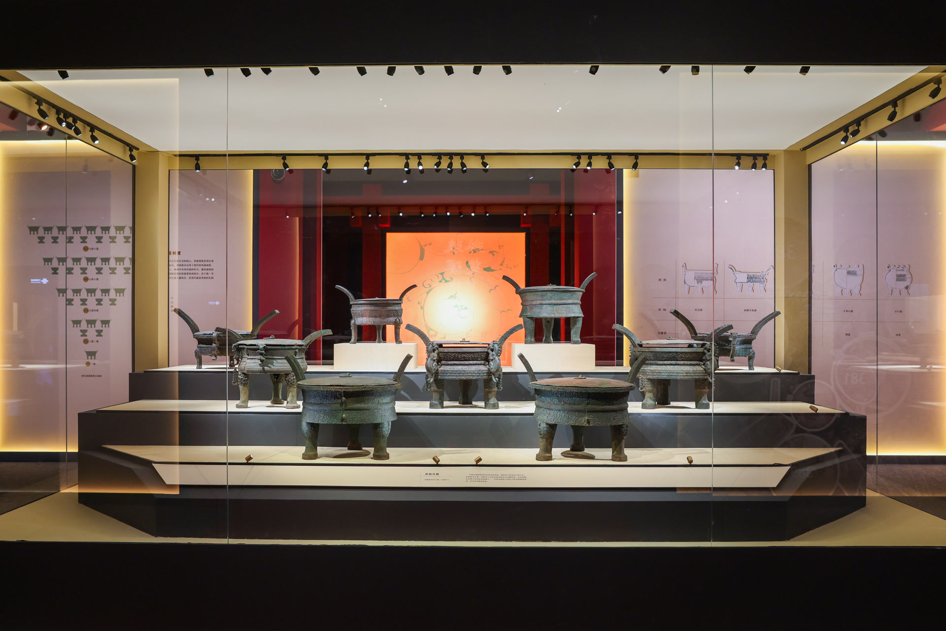 相邻展示的青铜升鼎,