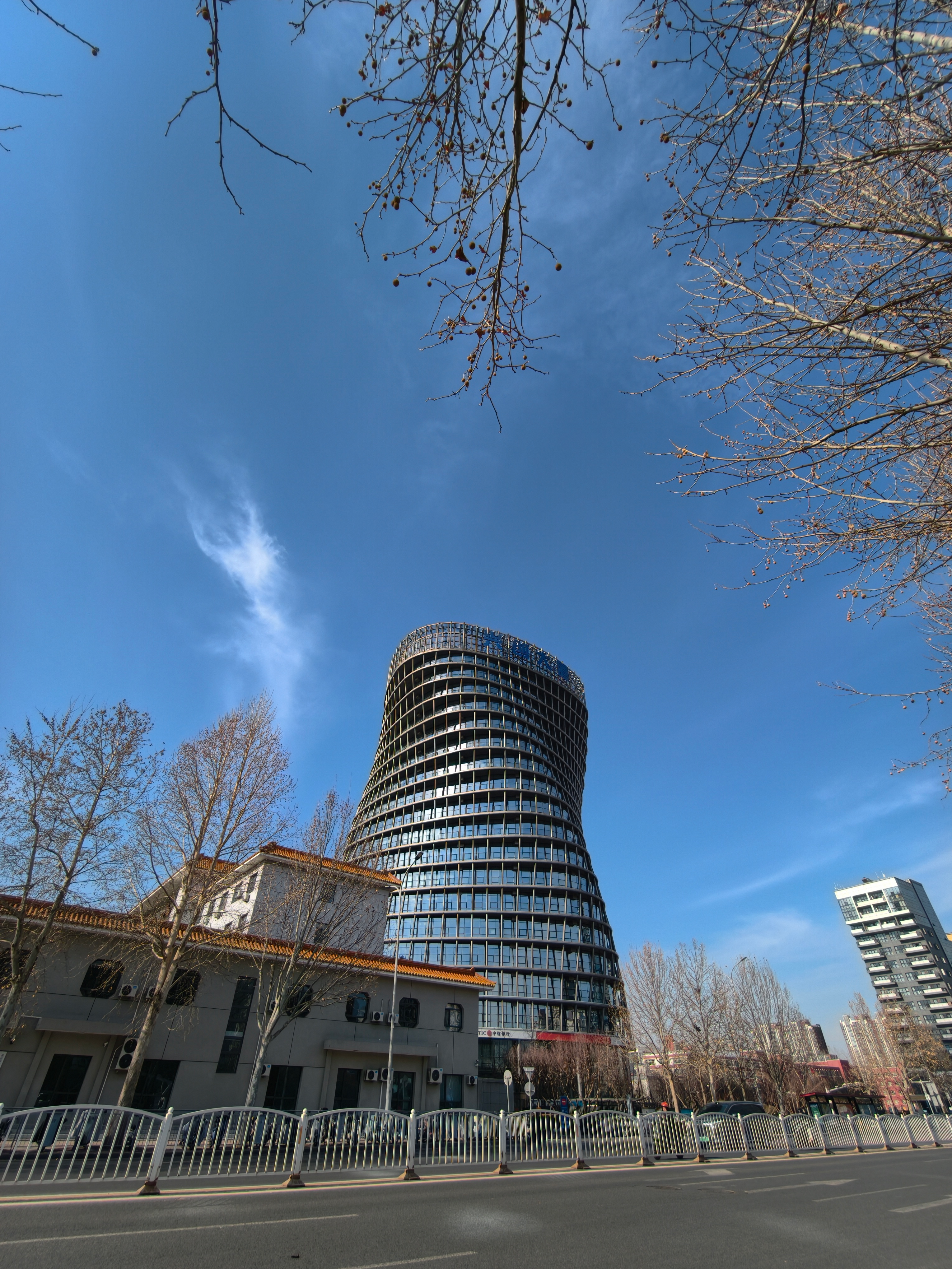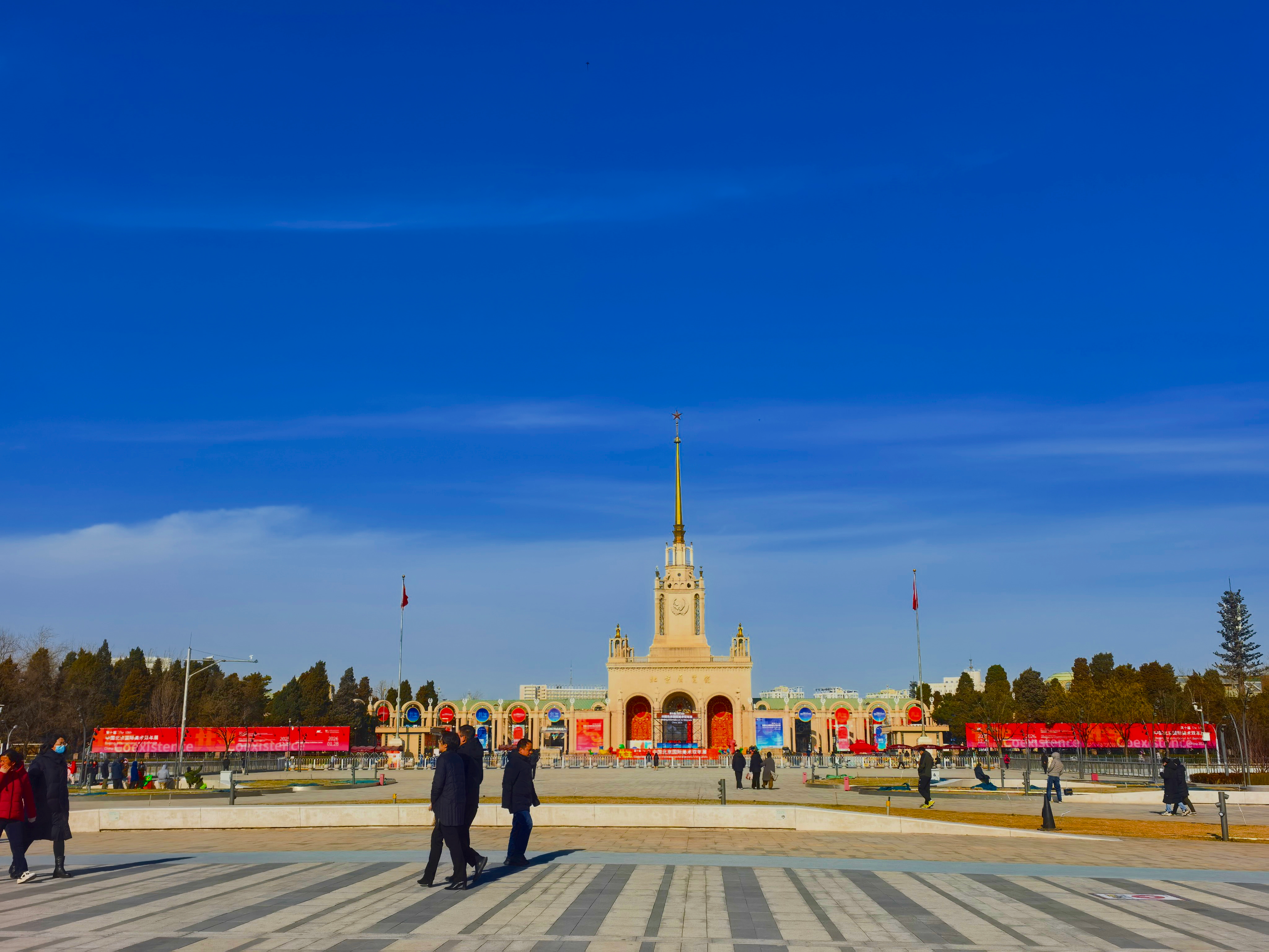 北京冬日,暖阳倾洒,似金色纱幔轻覆大地。湛蓝天空如澄澈宝石,丝带般的白云悠悠飘荡,灵动又自在。